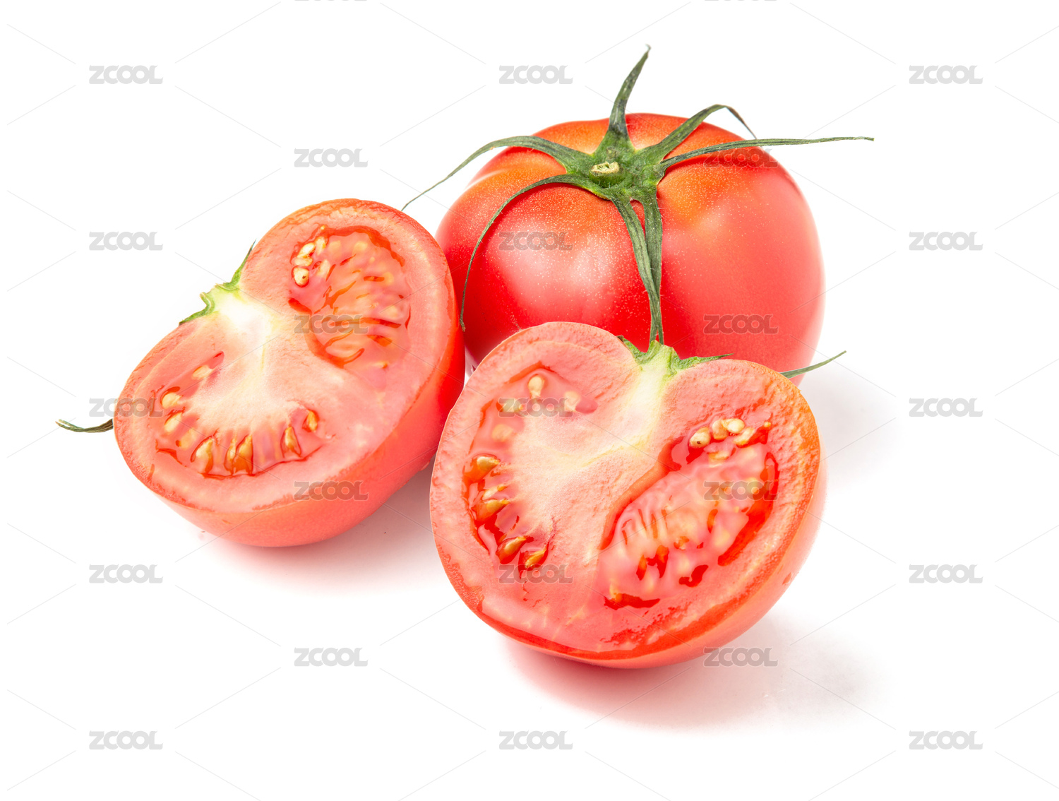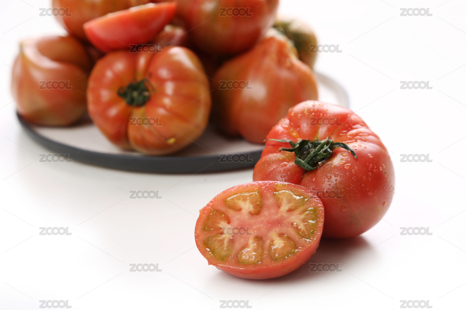 新鲜水果草莓和小番茄与透明的杯子,橙汁和纯色的背景