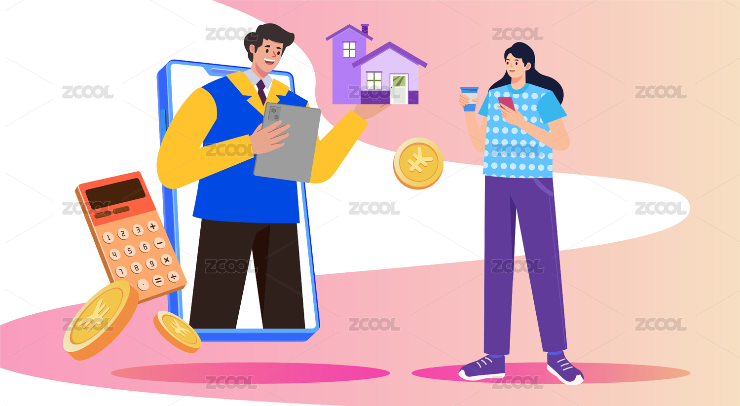 房屋中介销售插画