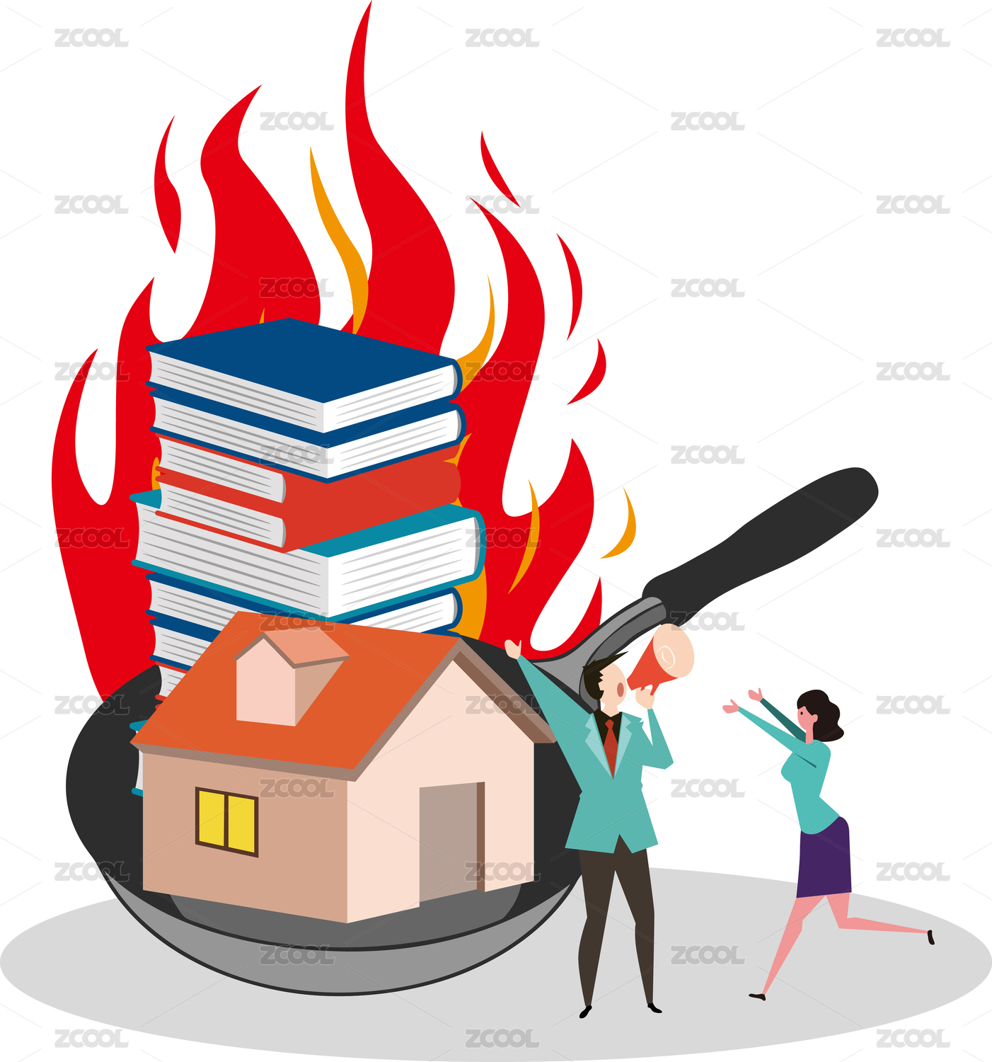 房产中介炒作学区房乱象矢量插画