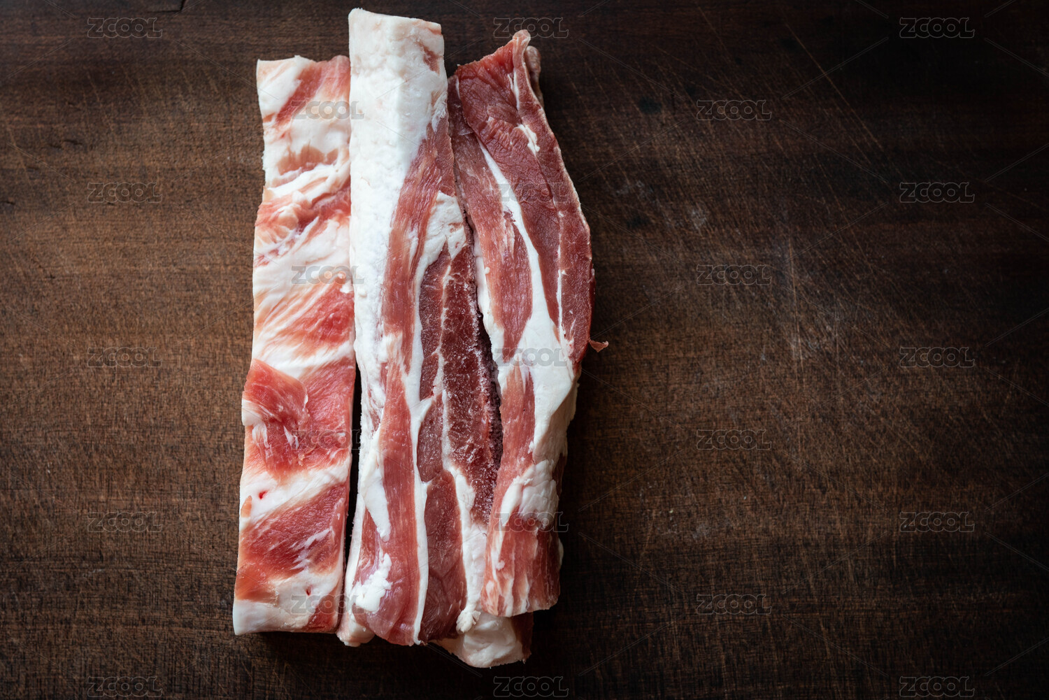 案板上的几块五花肉