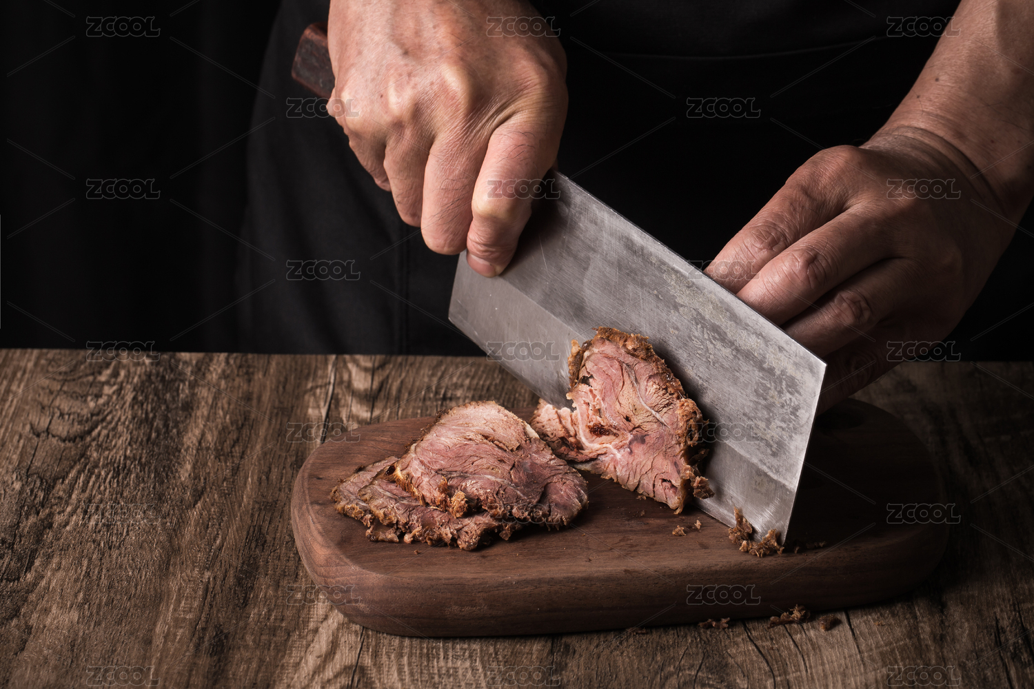 分割卤牛肉厨师