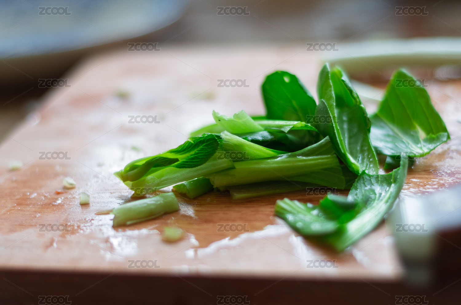 案板上的新鲜青菜