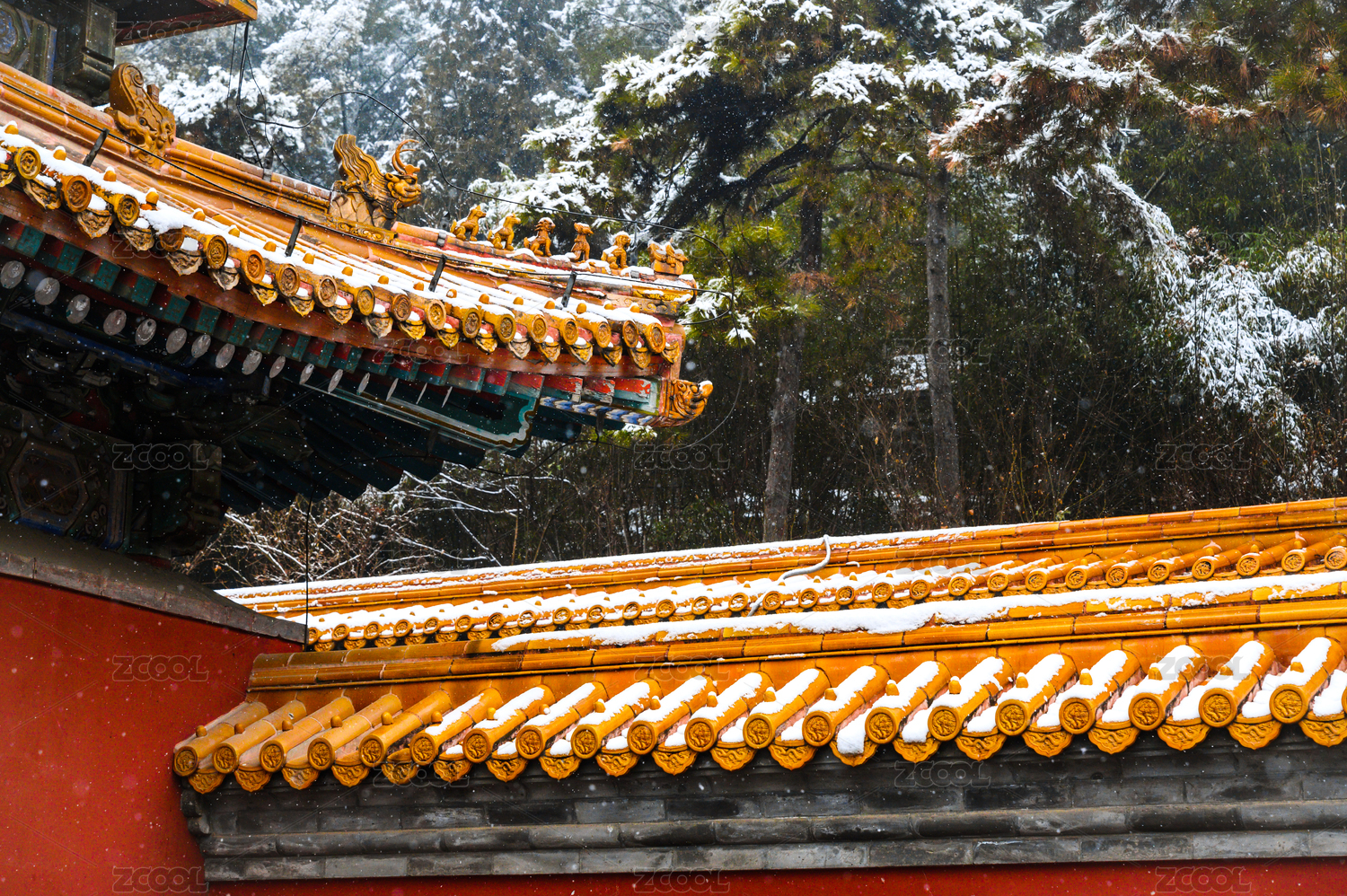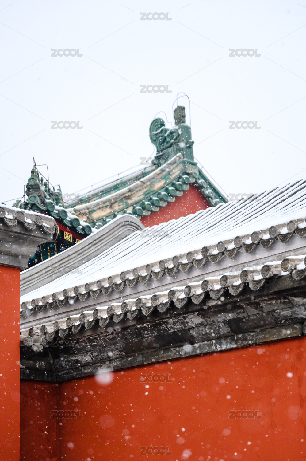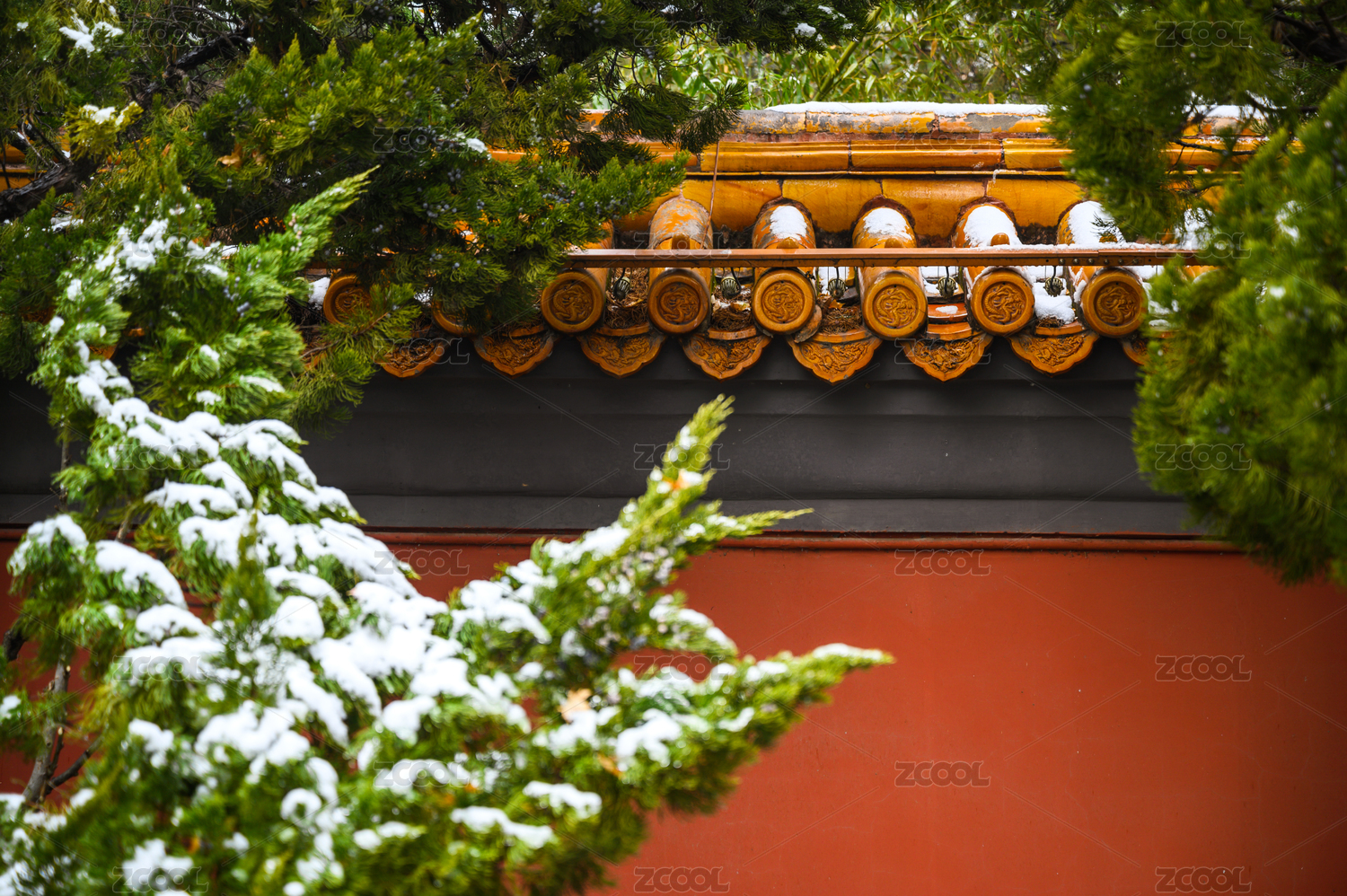 中国北京景山公园红墙雪景
