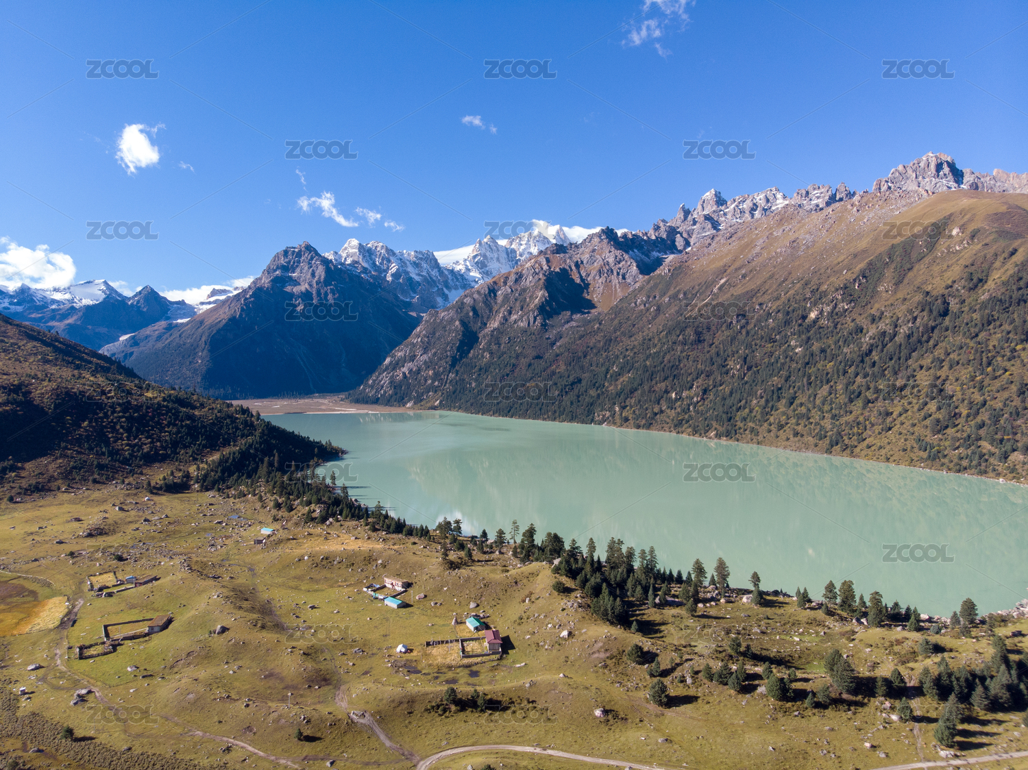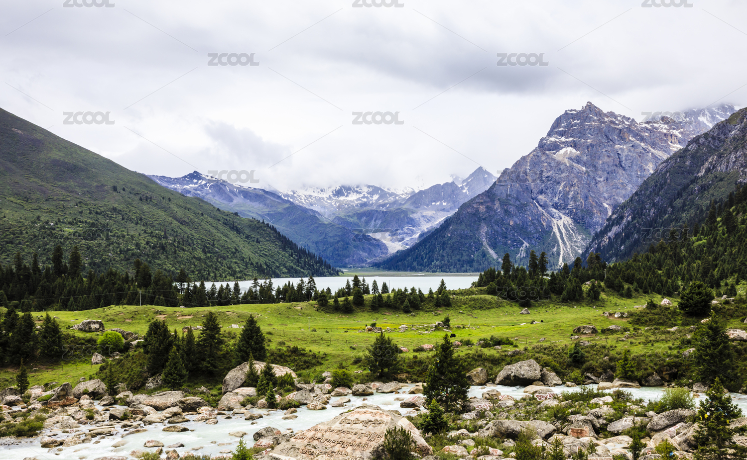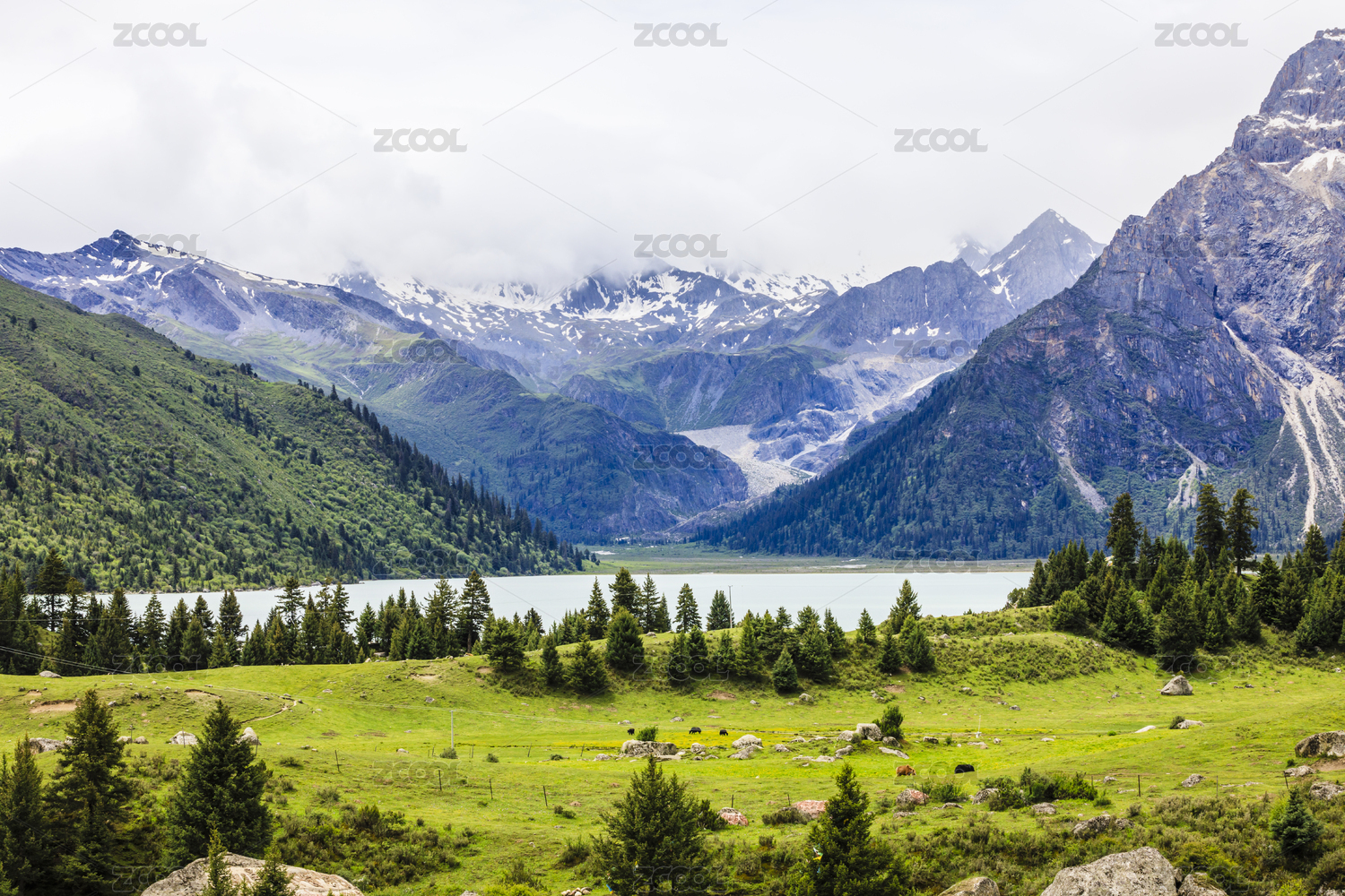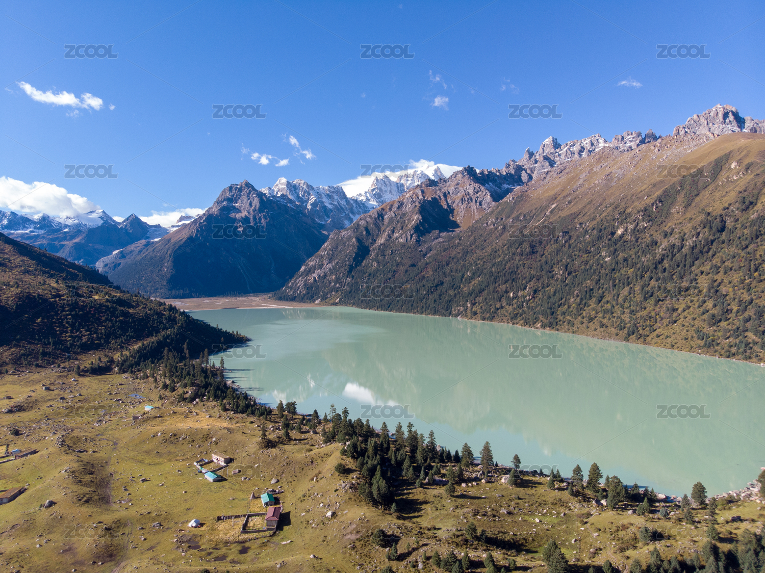 中国四川甘孜州夏天傍晚的玉隆拉措和雀儿山
