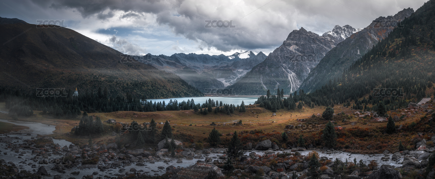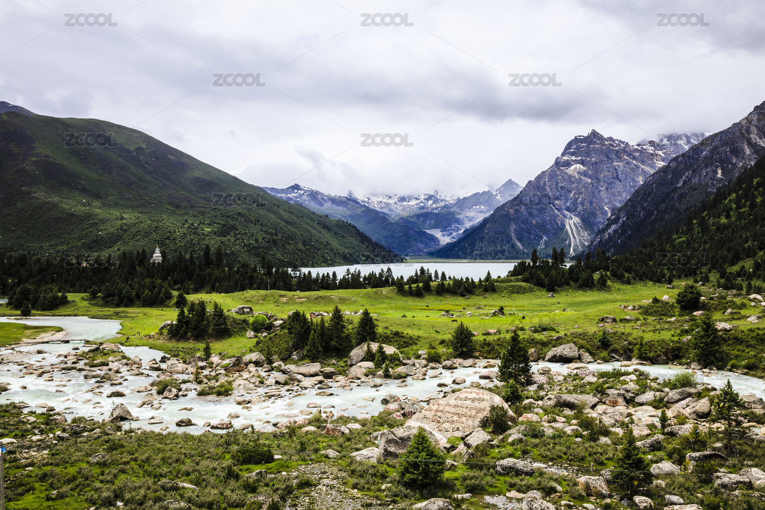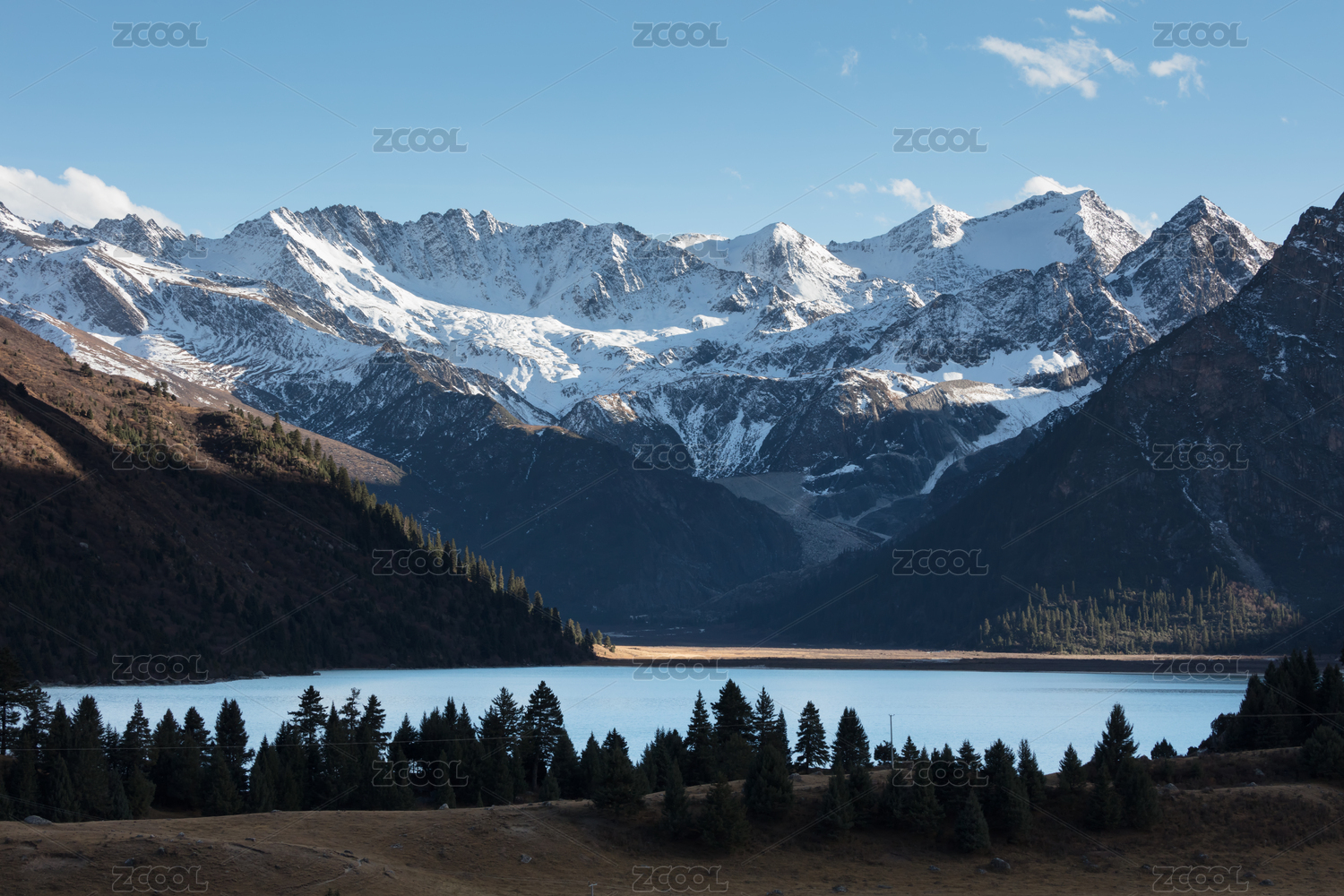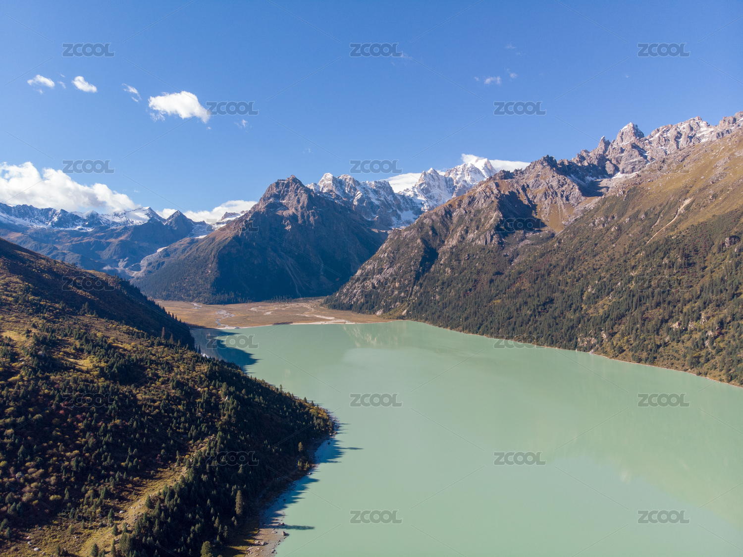 中国四川甘孜州夏天傍晚的玉隆拉措和雀儿山