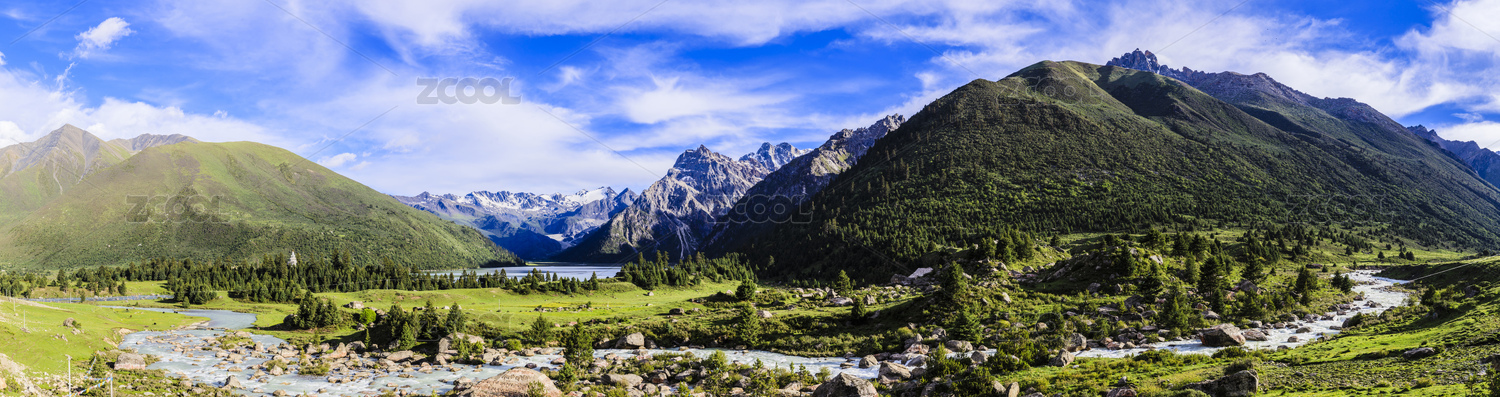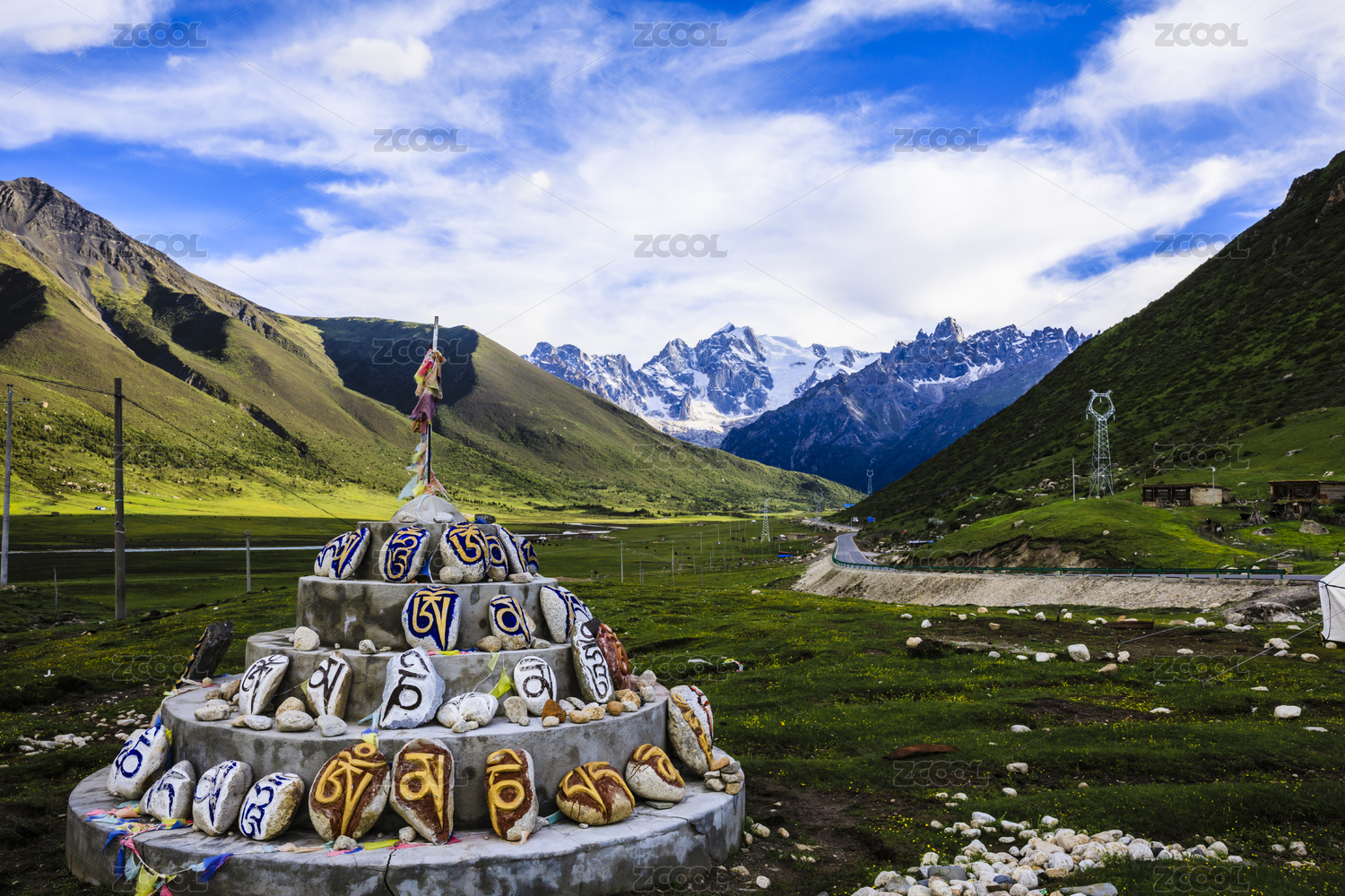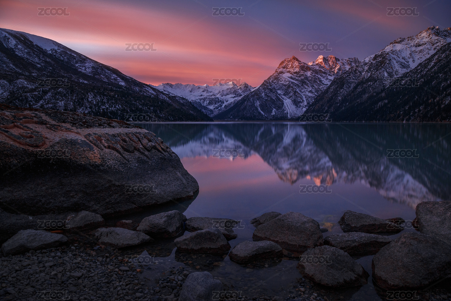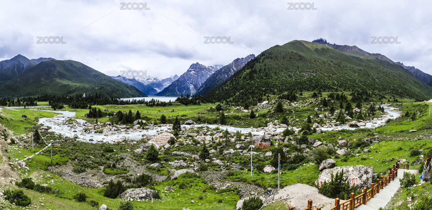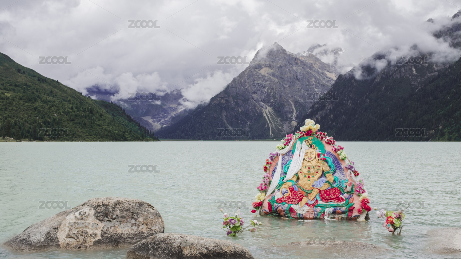 中国四川甘孜州夏天傍晚的玉隆拉措和雀儿山