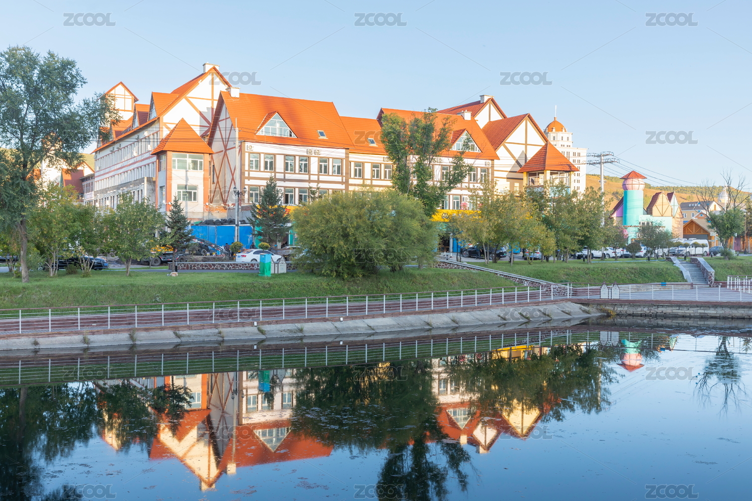 中国内蒙古阿尔山秋日哈拉哈河城市美景