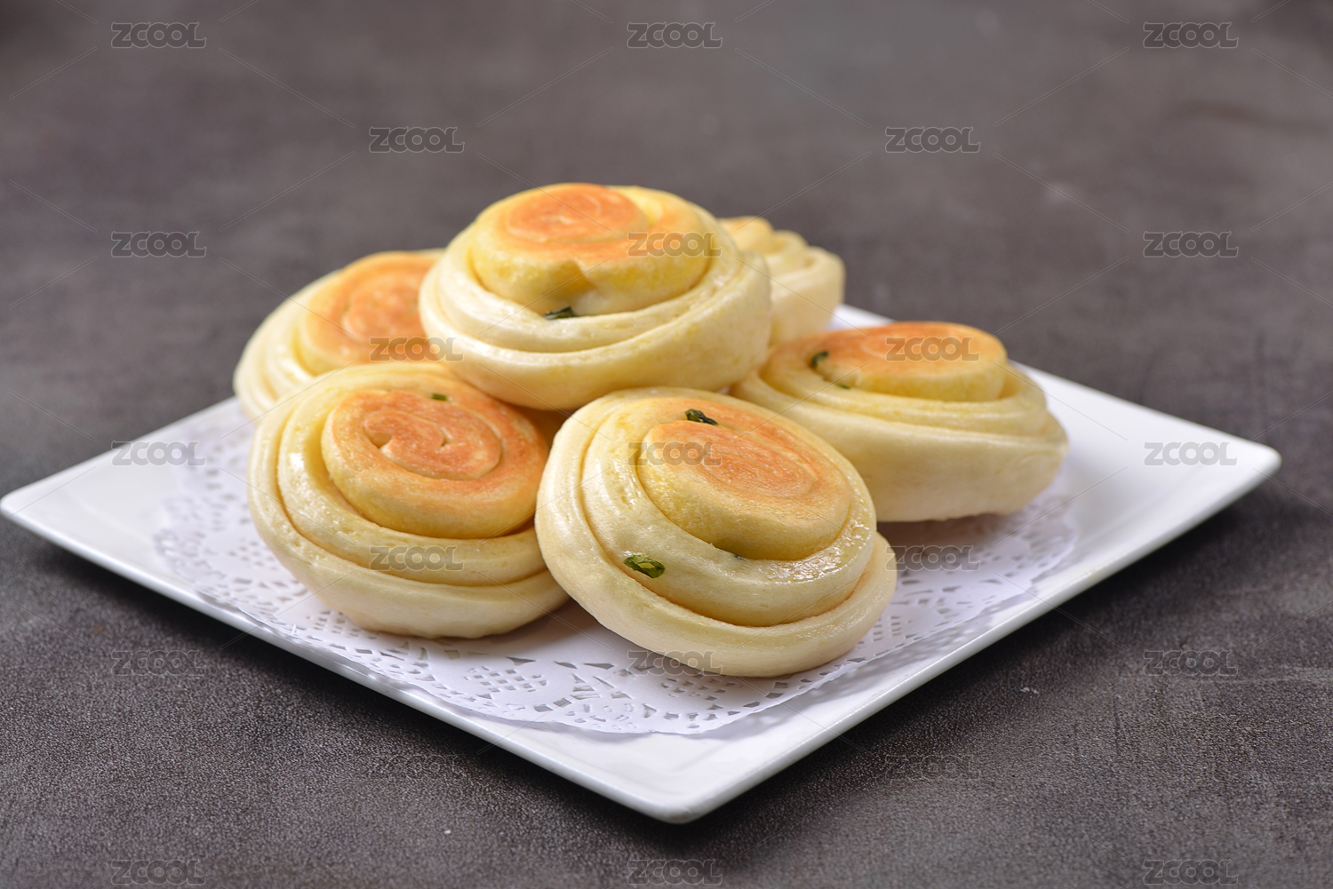 一盘煎小花卷放在灰色底板上