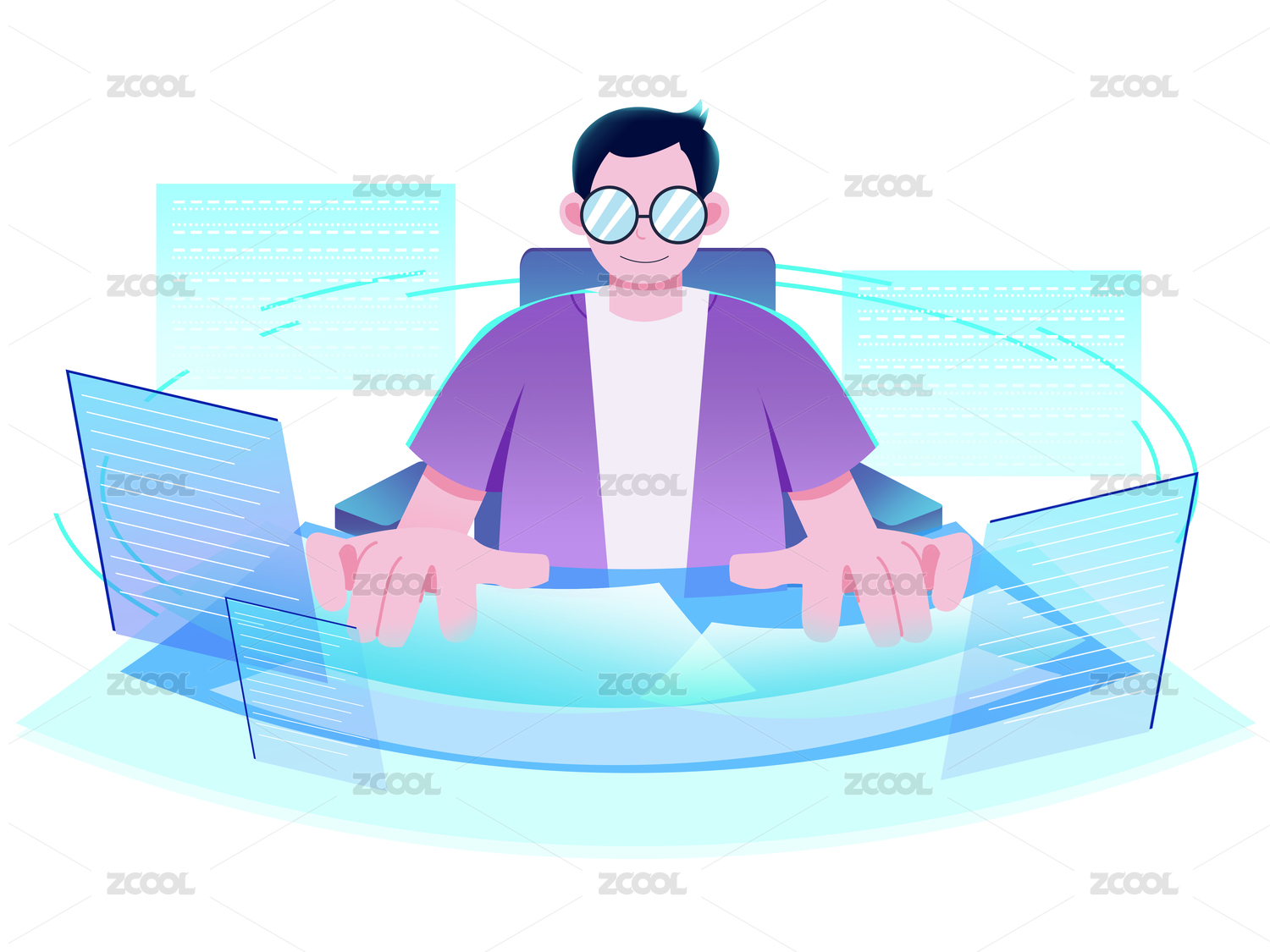 紫橙色扁平程序员书桌电脑办公工作数据软件