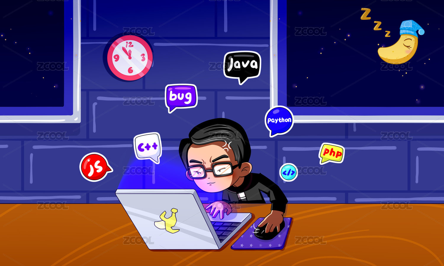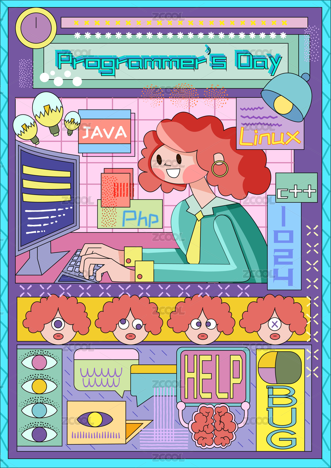 紫色背景程序员节日插画