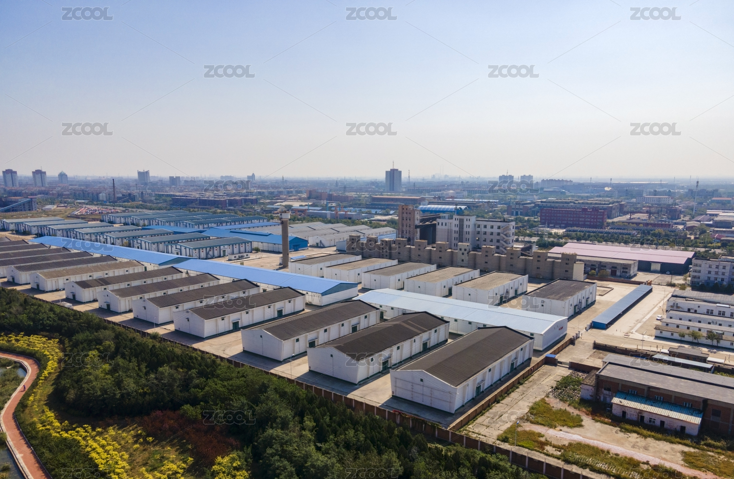 天津滨海新区大港航拍工厂仓库俯视图