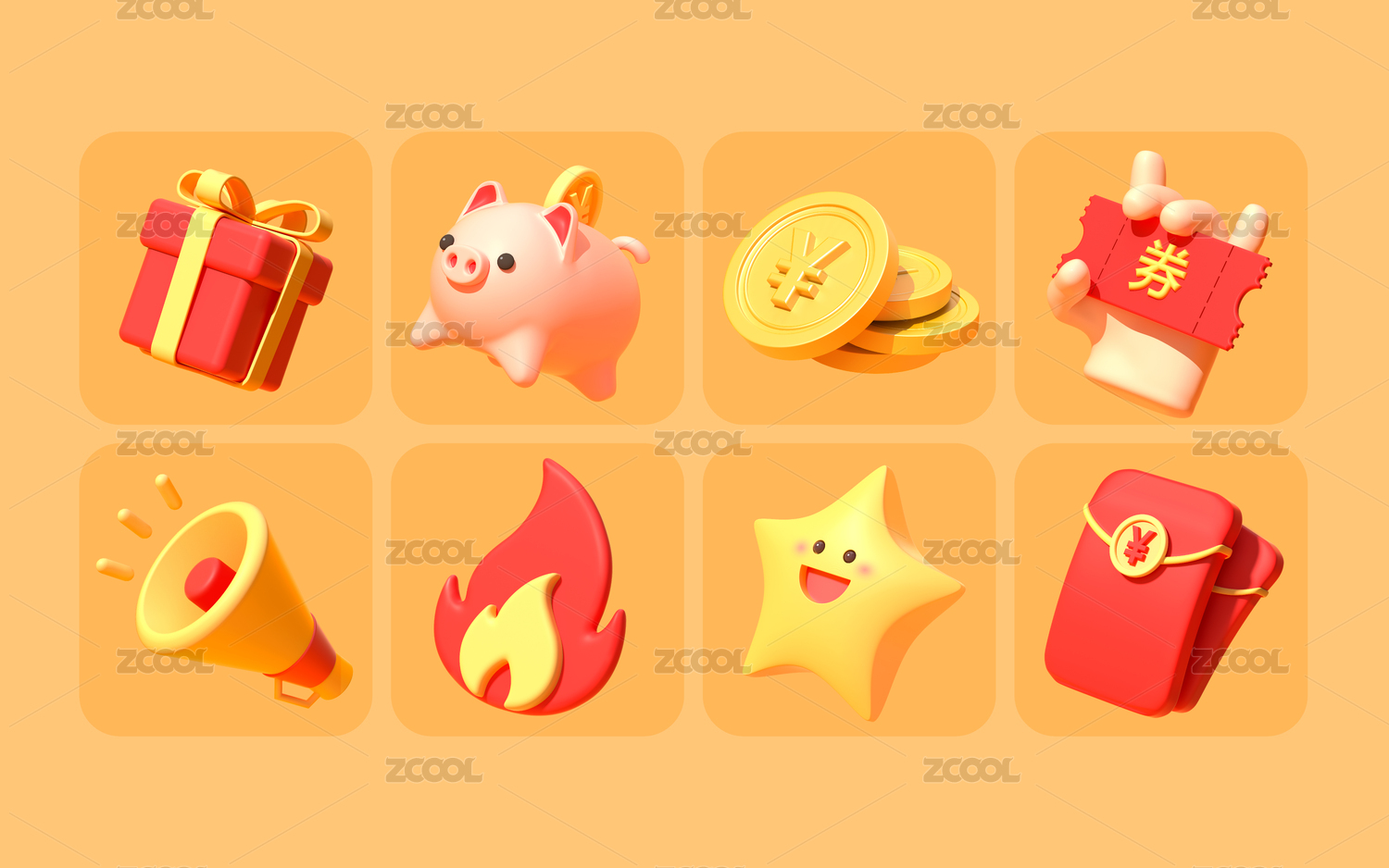 橙色背景中的电商活动促销图标元素合集