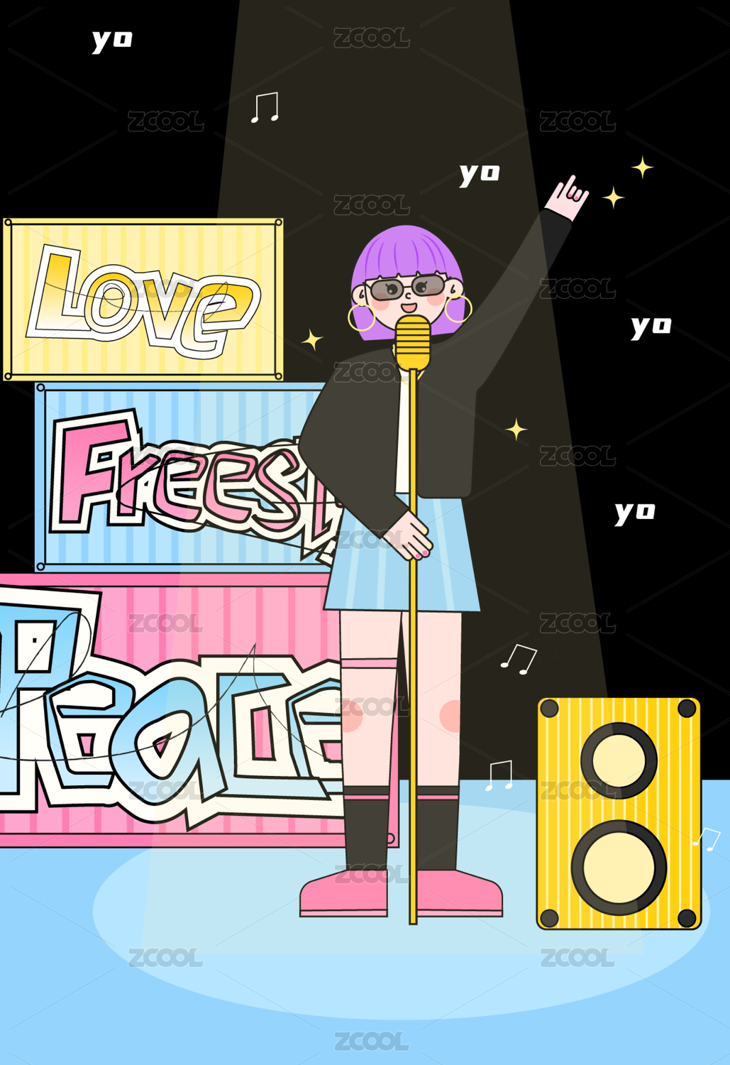 嘻哈说唱rap图标矢量插画贴纸