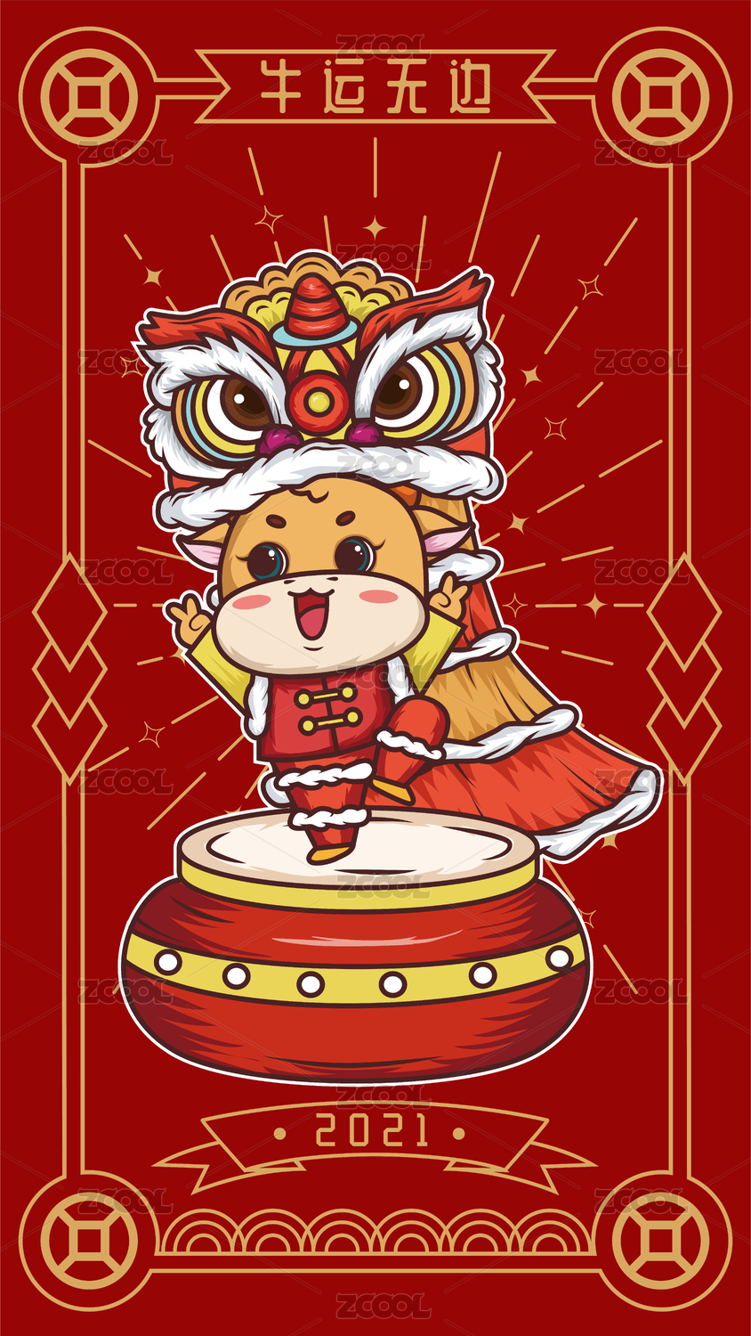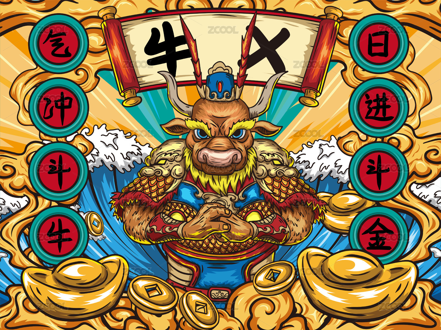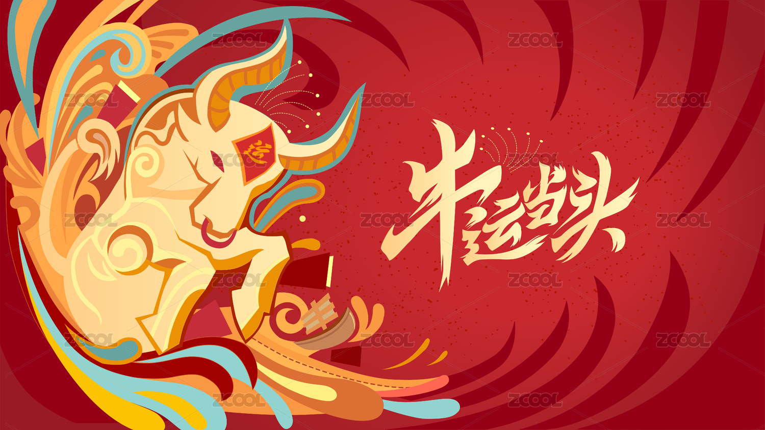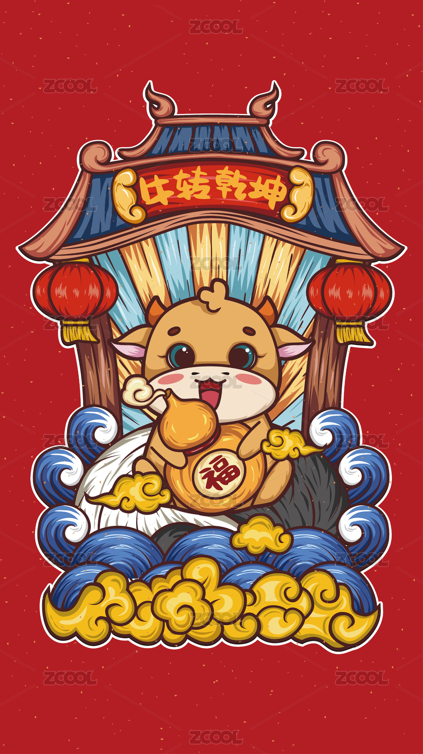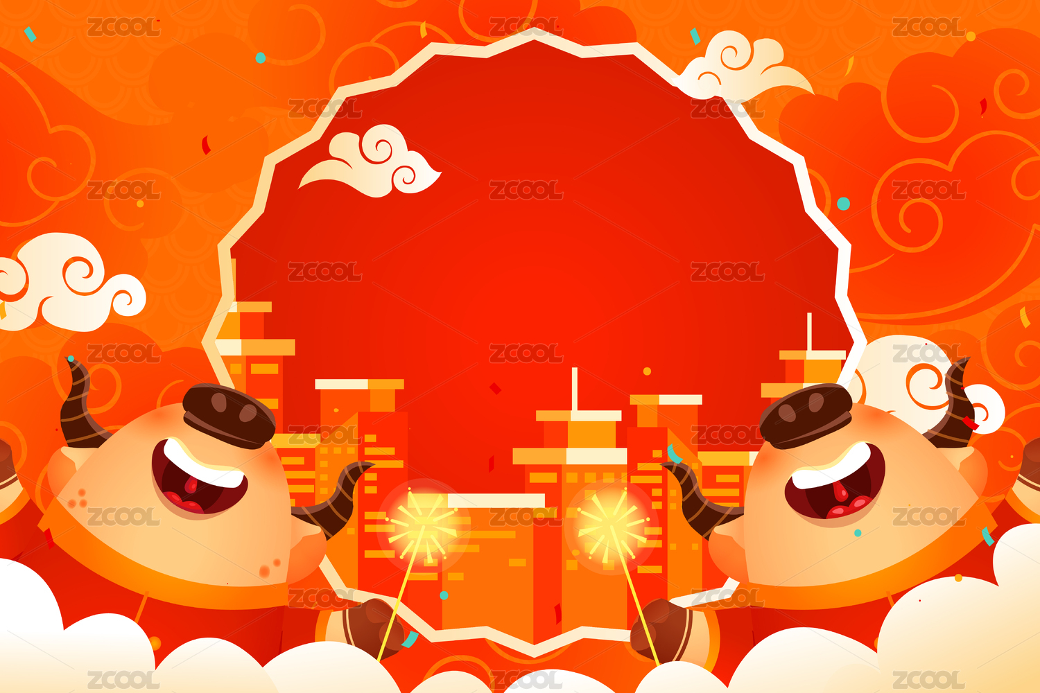 牛年节日插画手绘传统国风习俗文化国潮春节