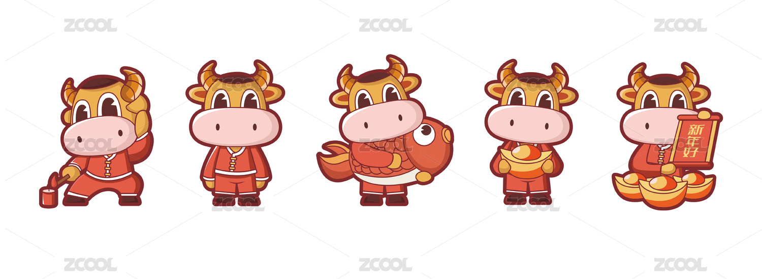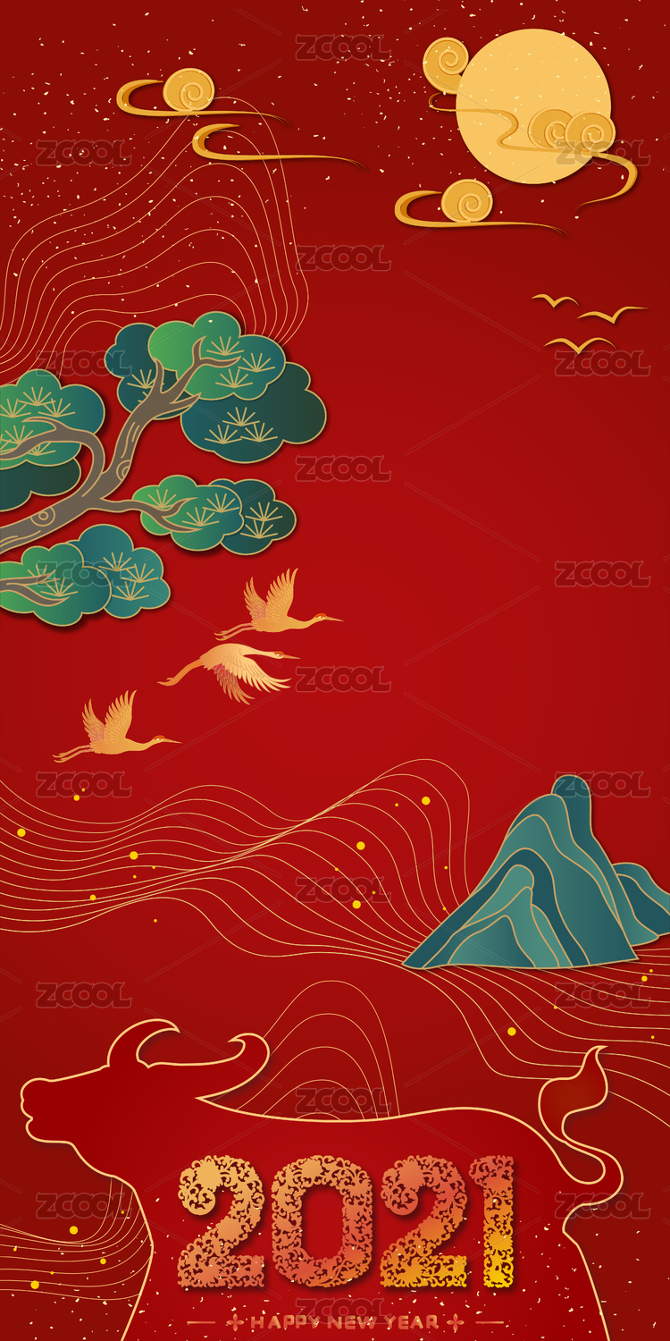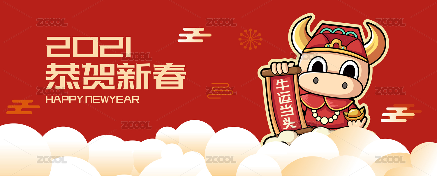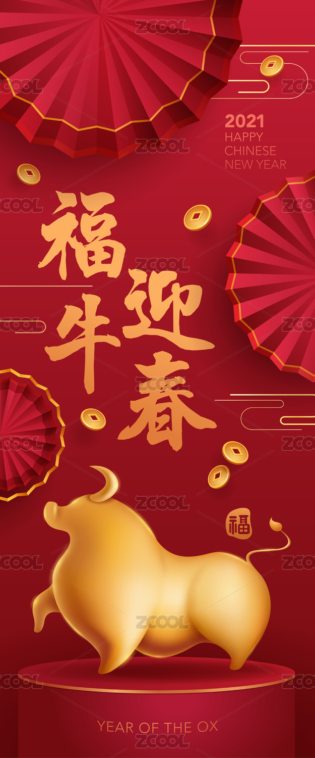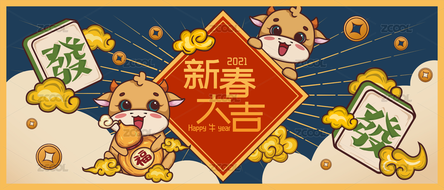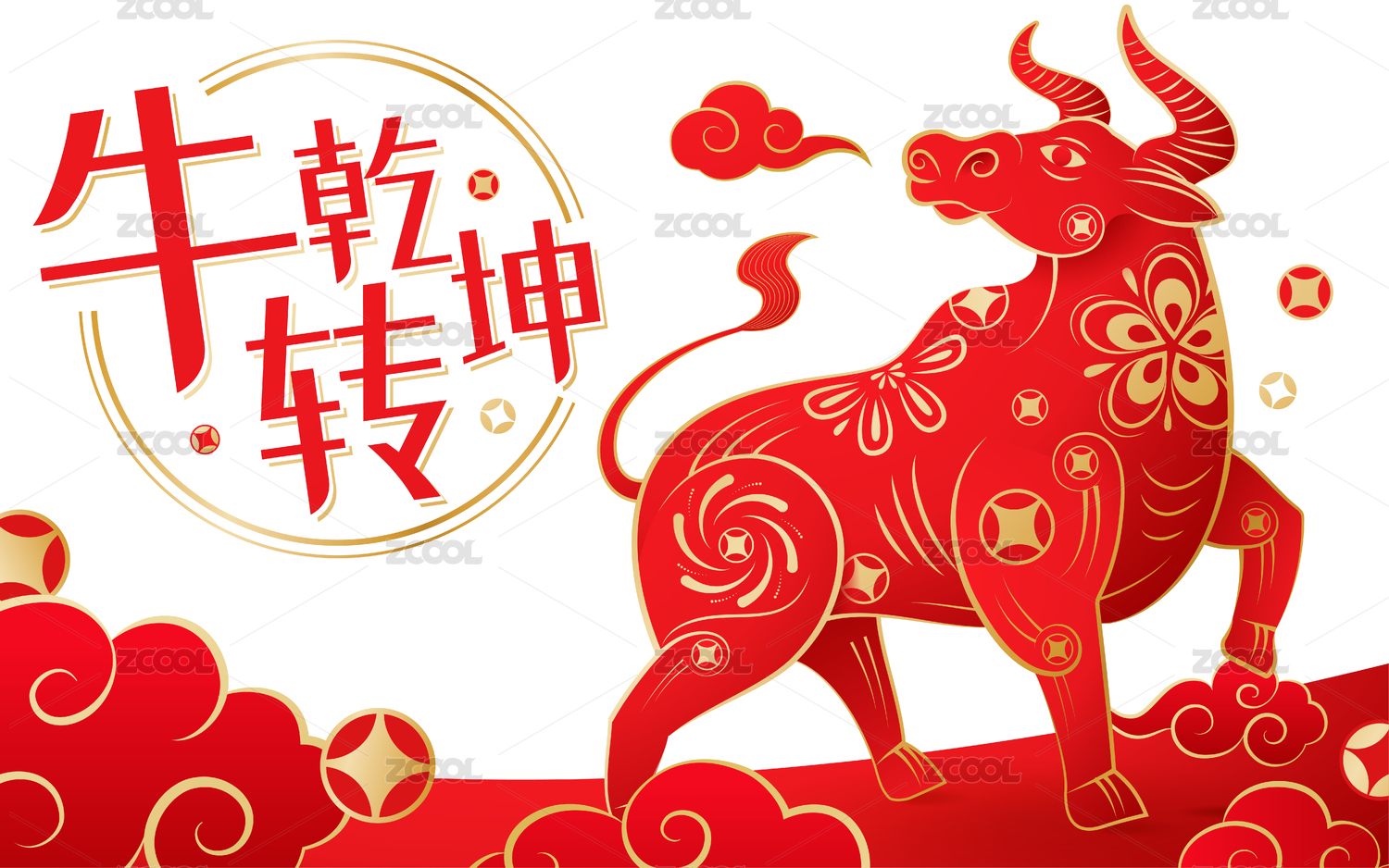 牛年节日插画手绘传统国风习俗文化国潮春节