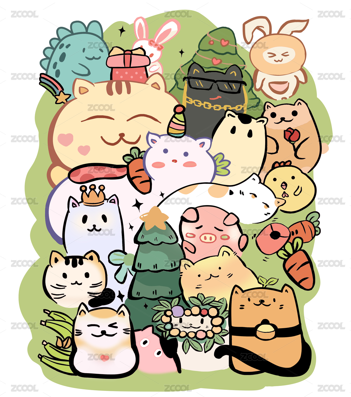 可爱小动物纹样-2025新年平安快乐