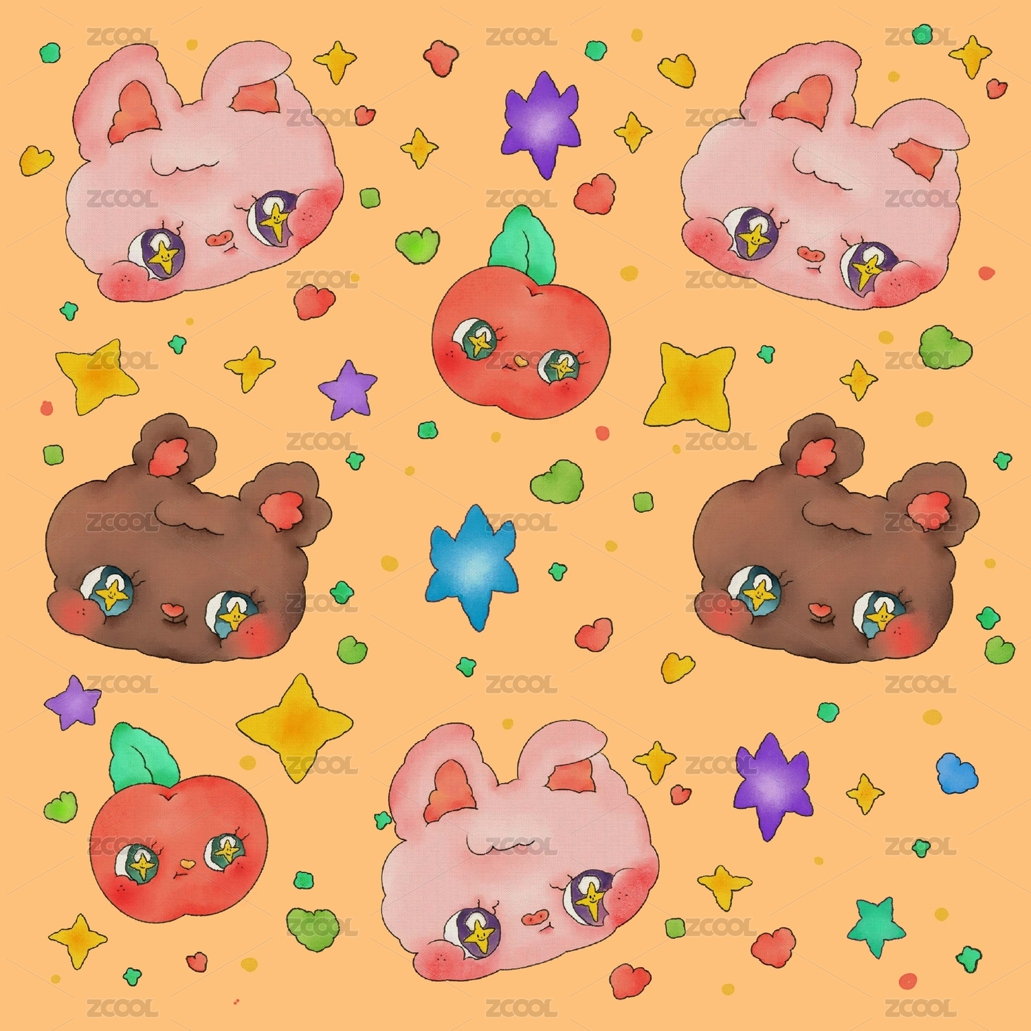 可爱小动物家纺图案