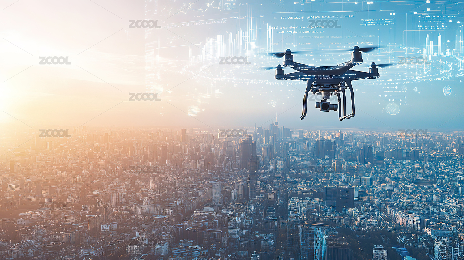 科技感十足的城市无人机网络概念