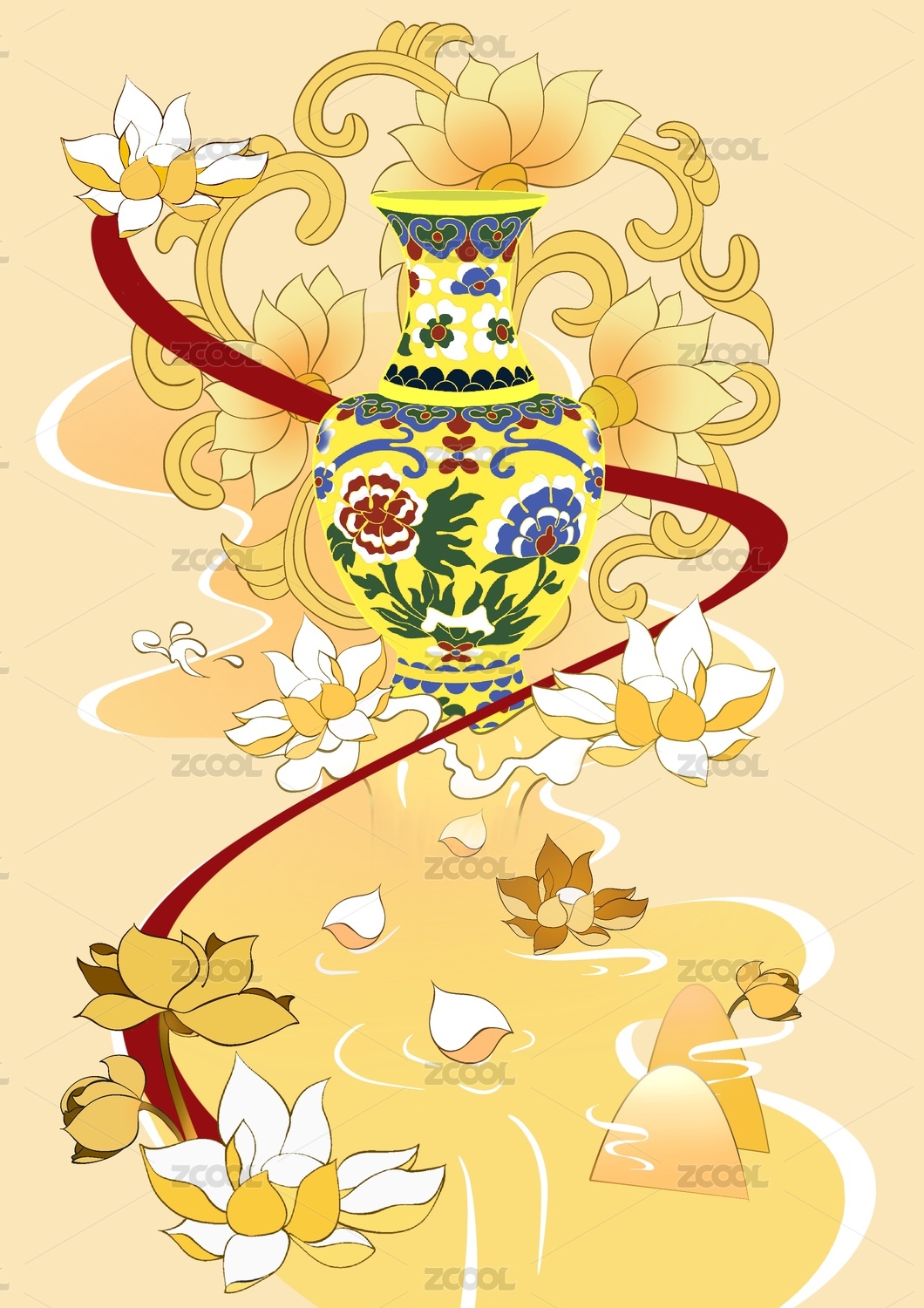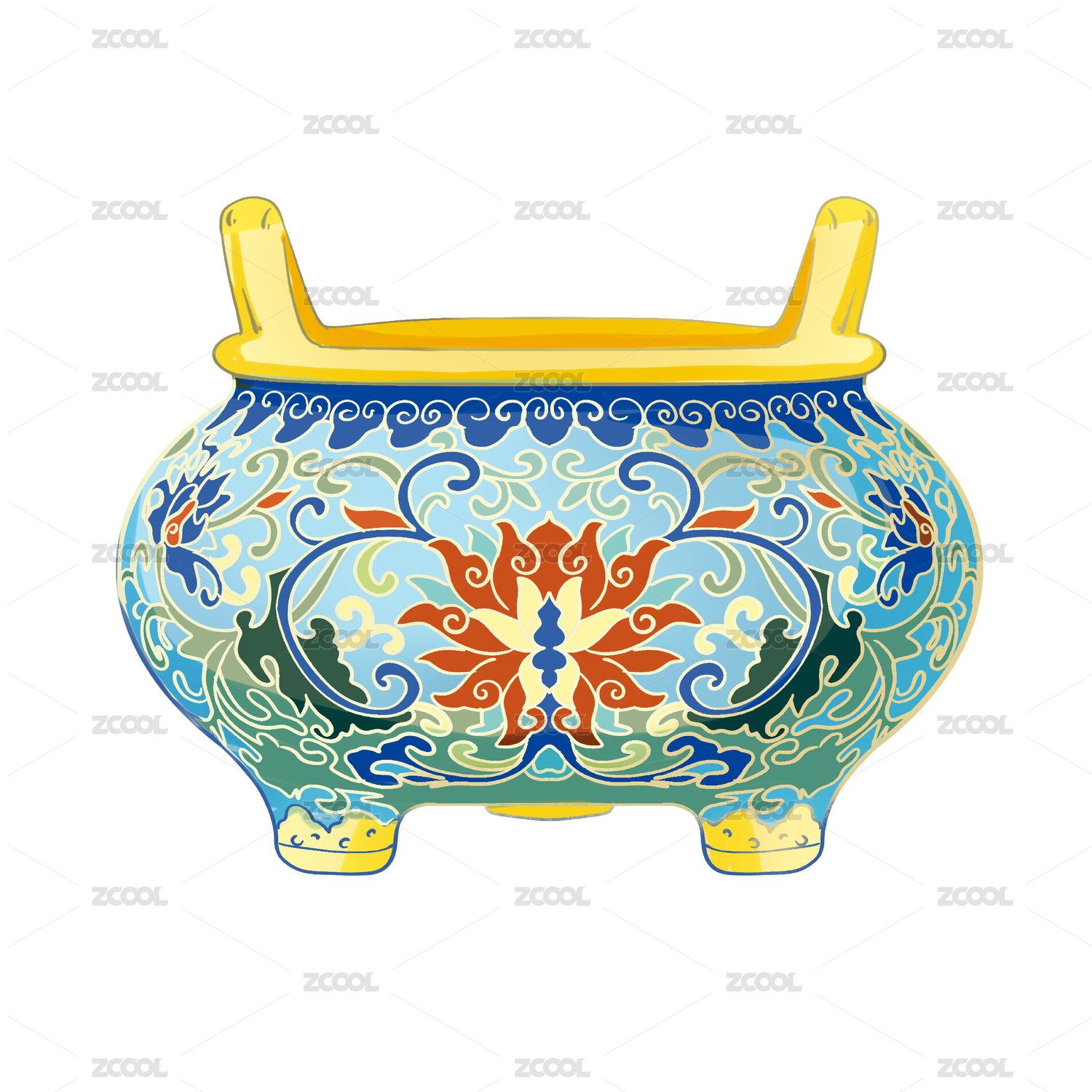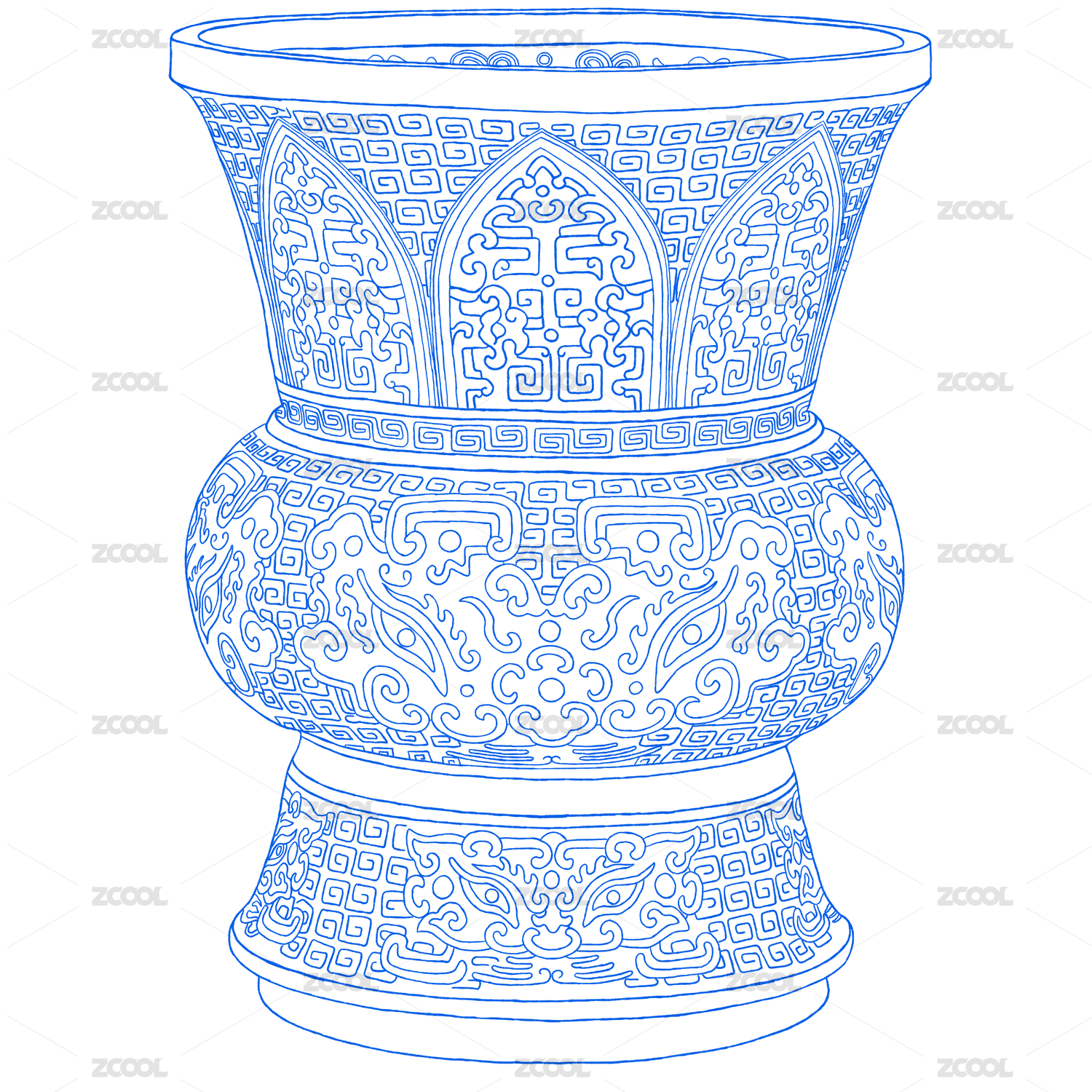 乾隆款掐丝珐琅兽面纹尊线稿插画图案