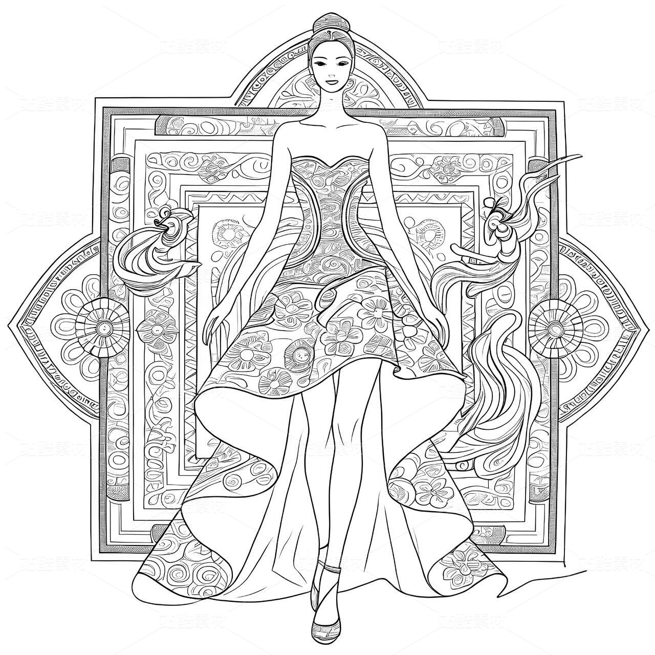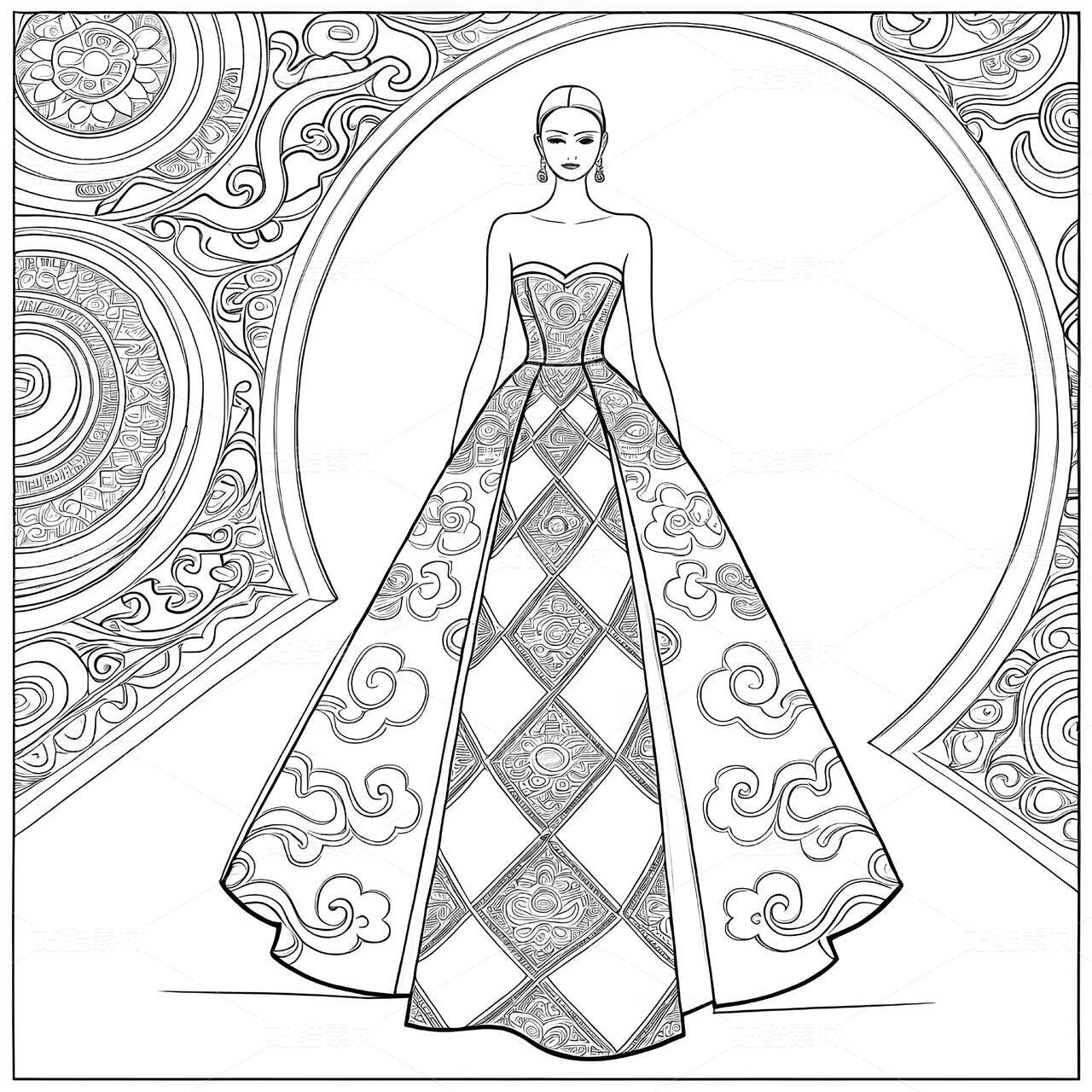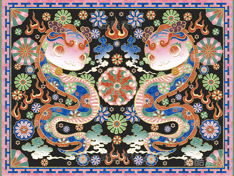 乾隆款掐丝珐琅兽面纹尊线稿插画图案