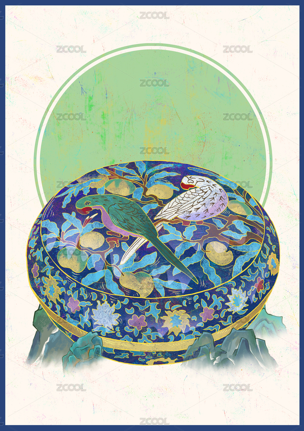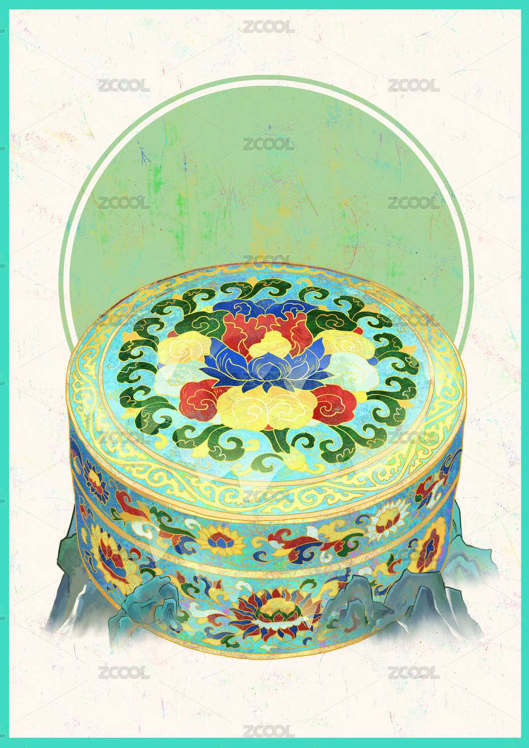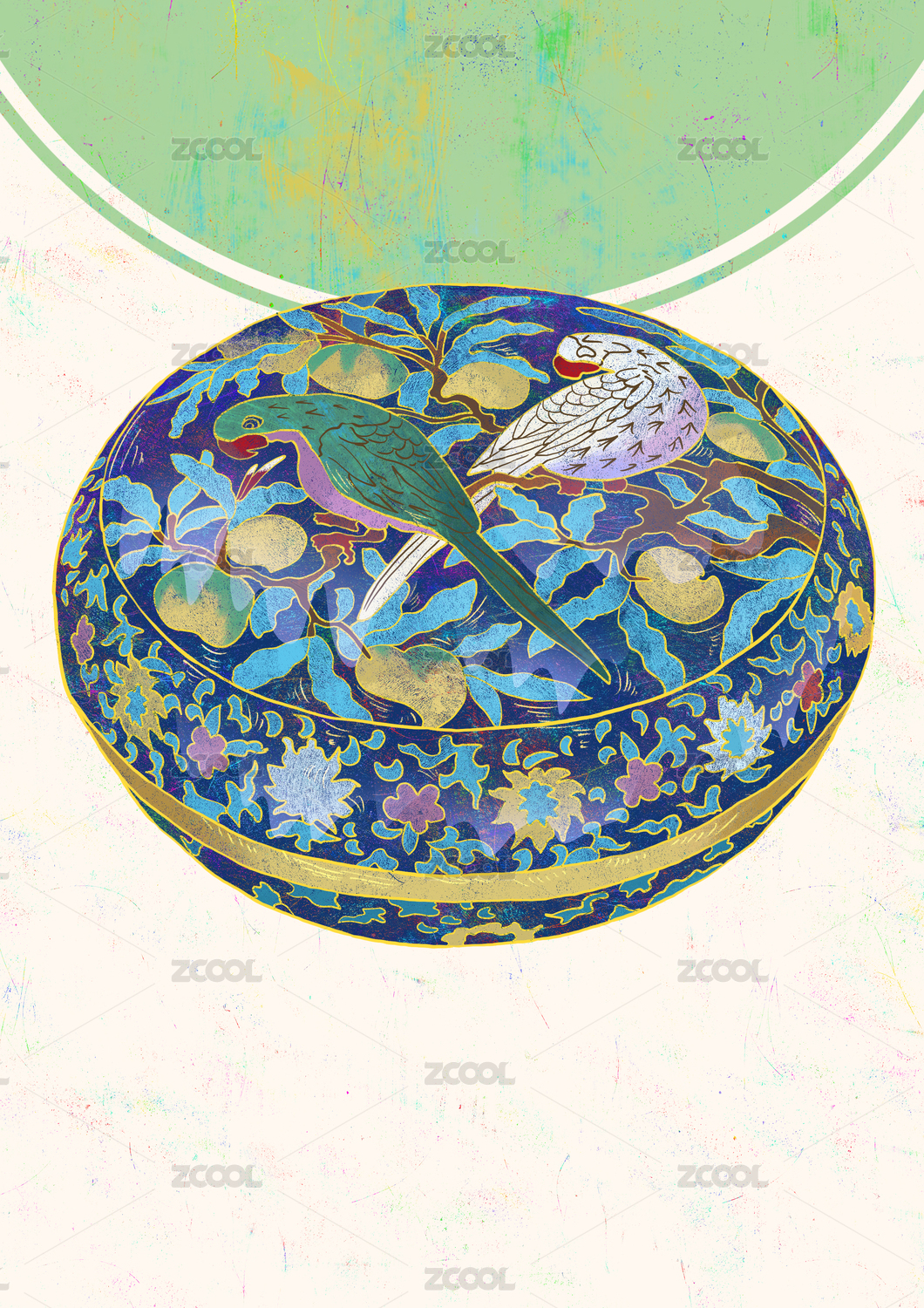 明代掐丝珐琅缠枝莲纹盒文物插画