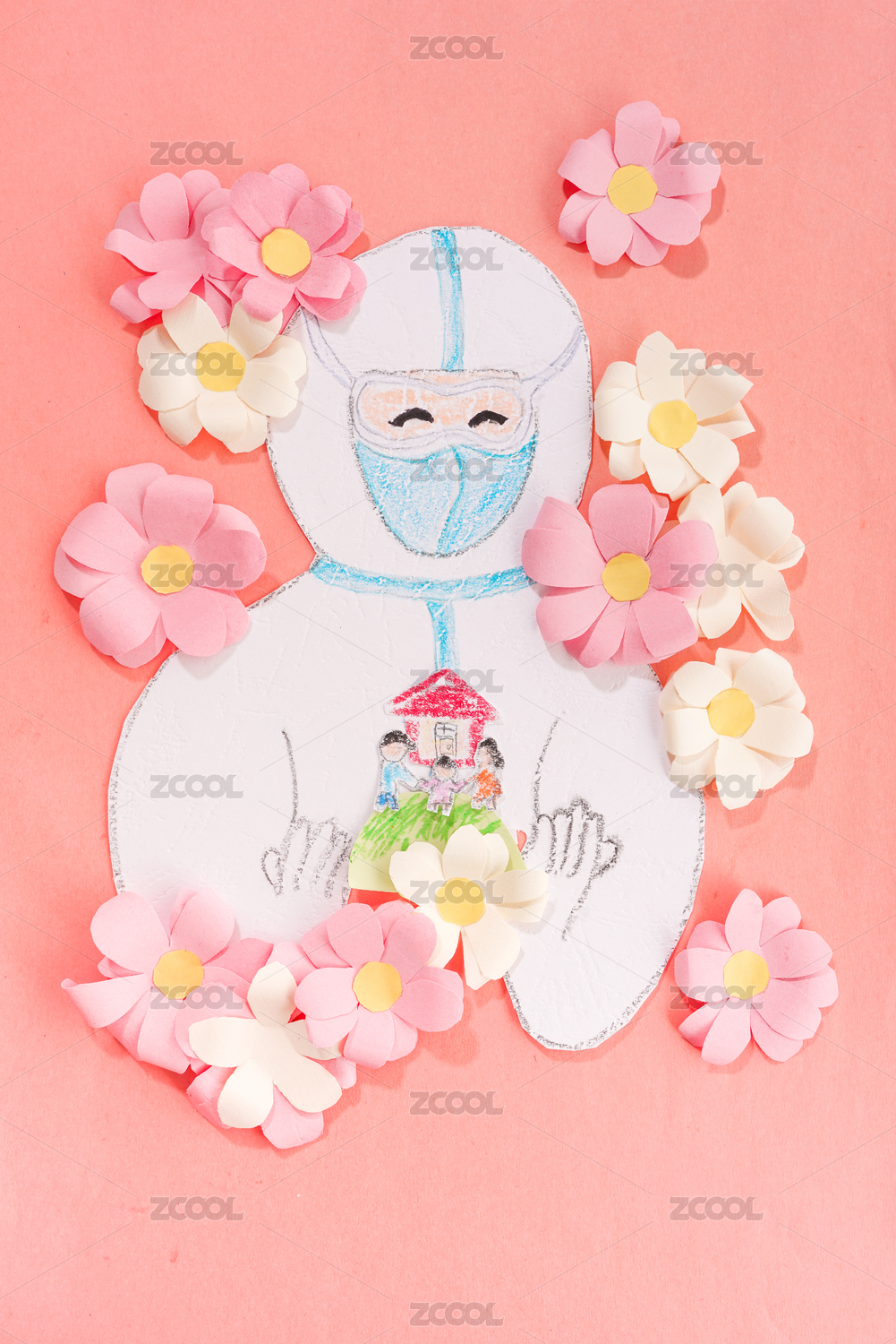 身穿防护服呵护生命和家园的医生插画