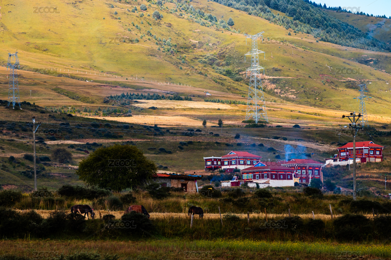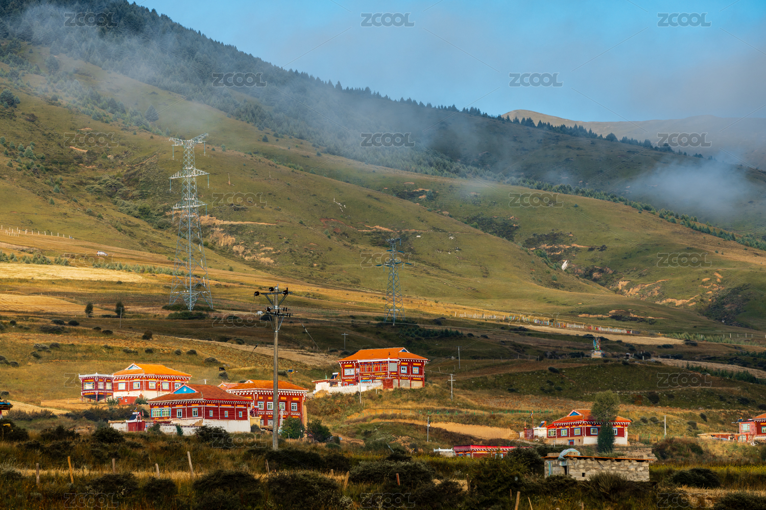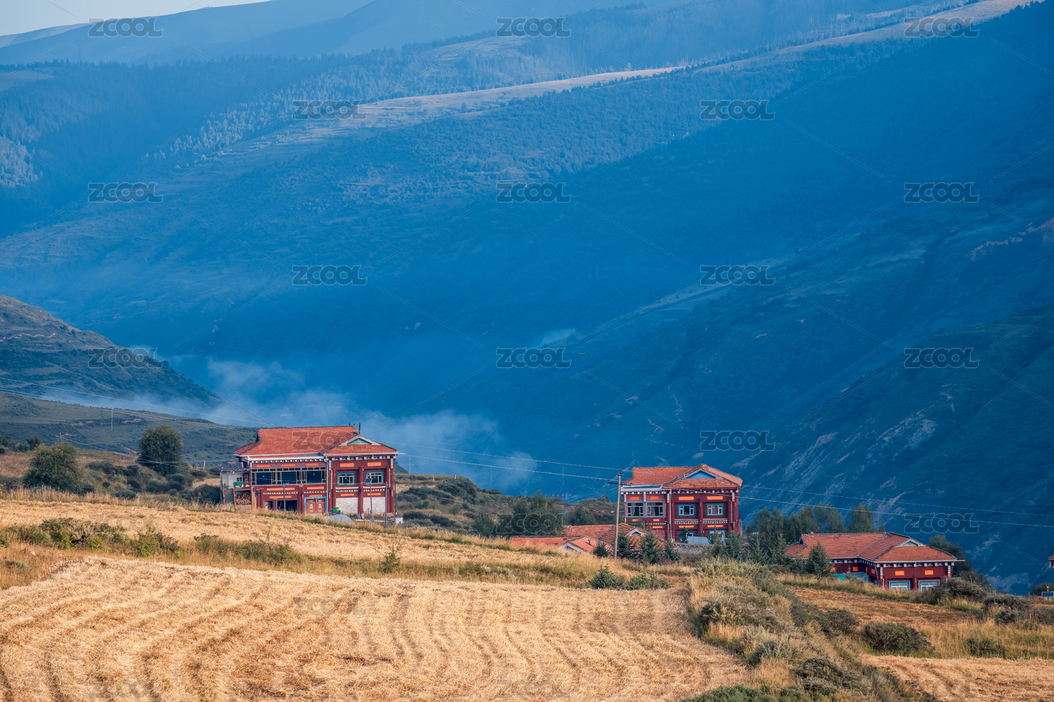 四川甘孜州清晨的藏族家园