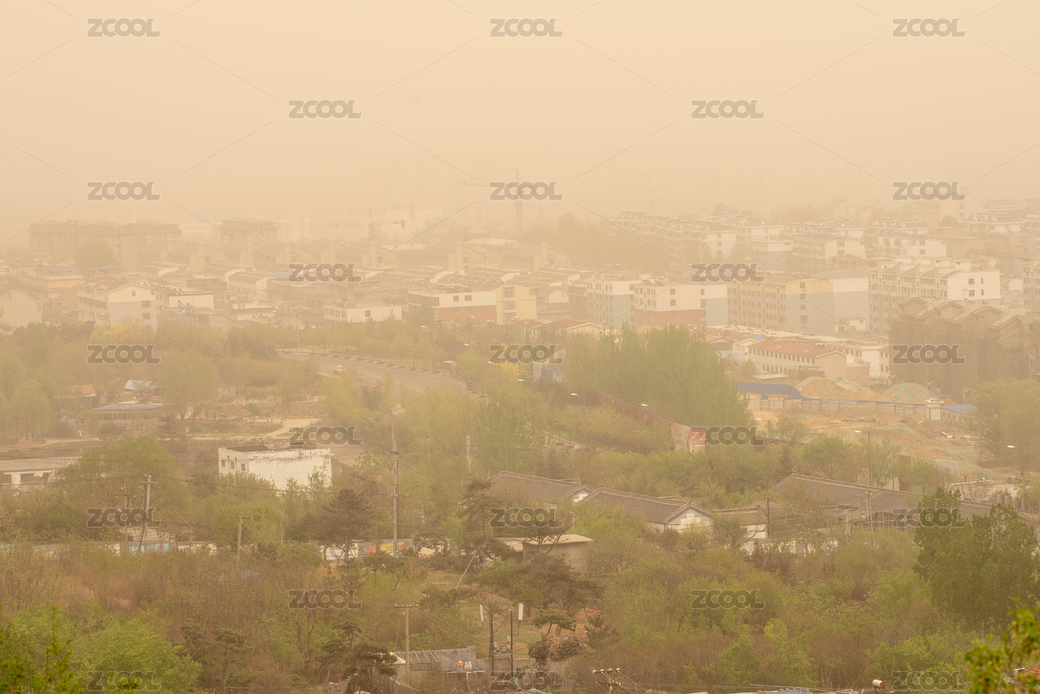 沙尘暴下的居民区