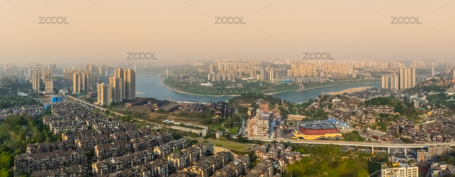 中国重庆市沙坪坝区沙尘暴嘉陵江外滩建筑