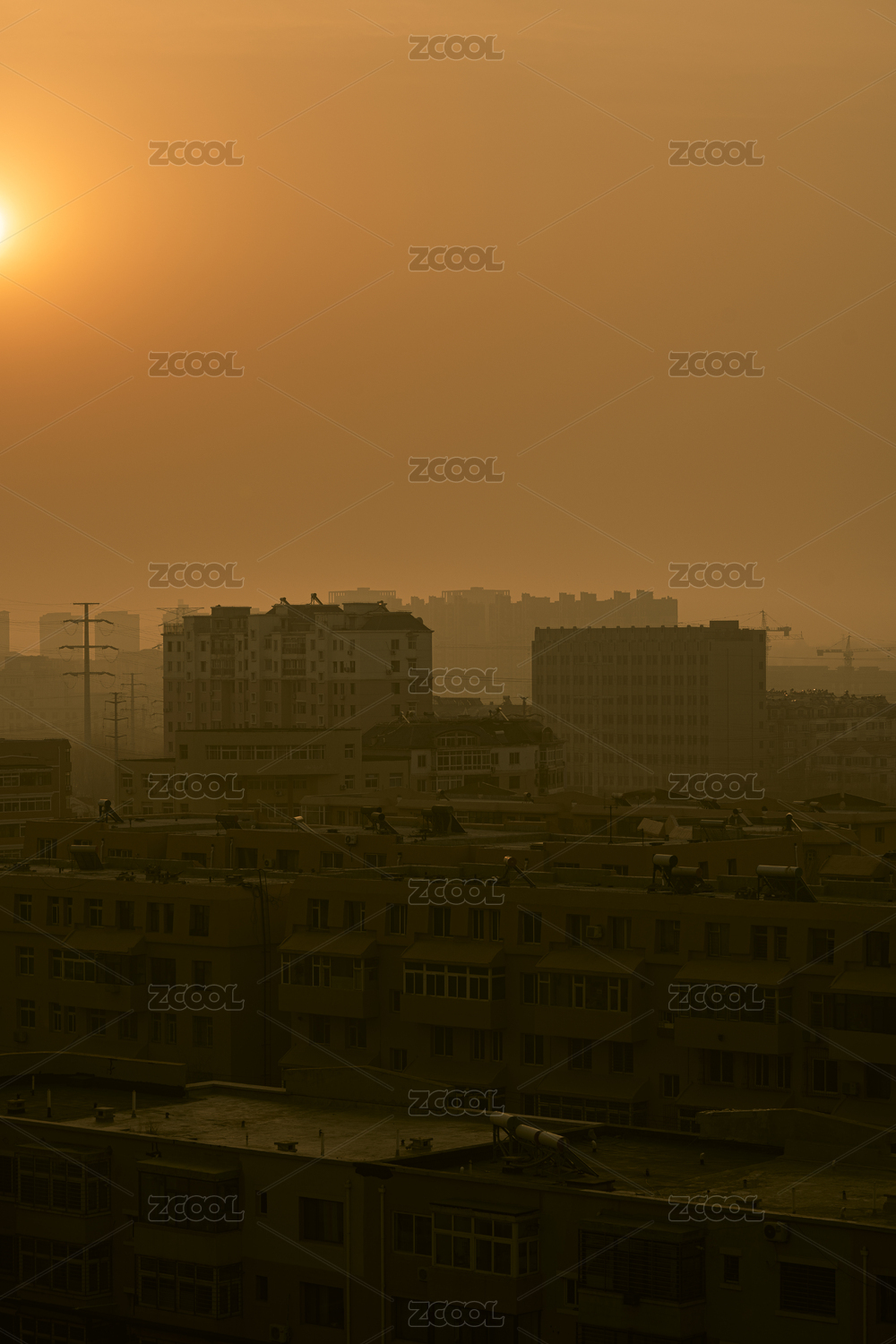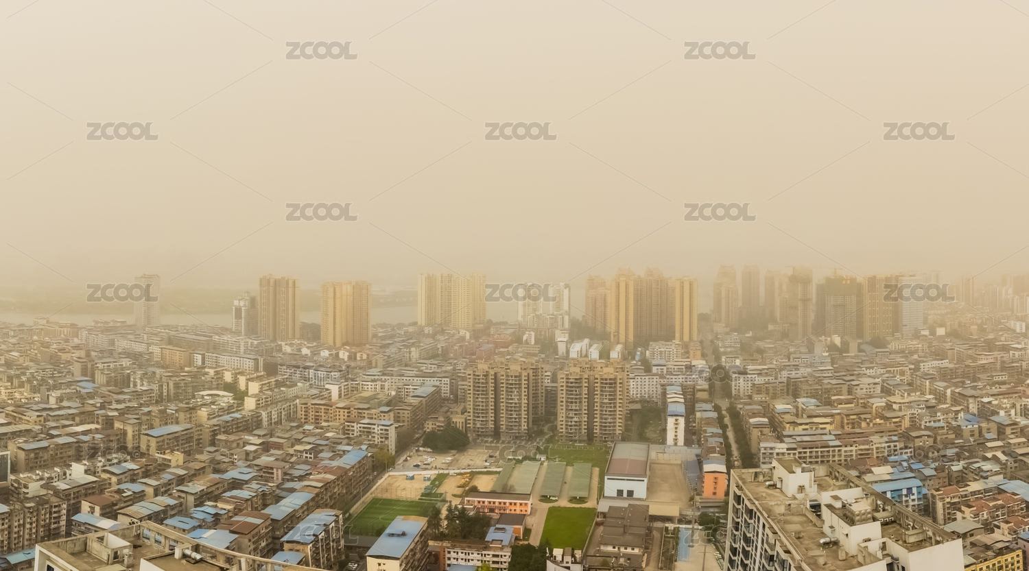 中国四川省遂宁市沙尘暴老城区高楼大厦建筑