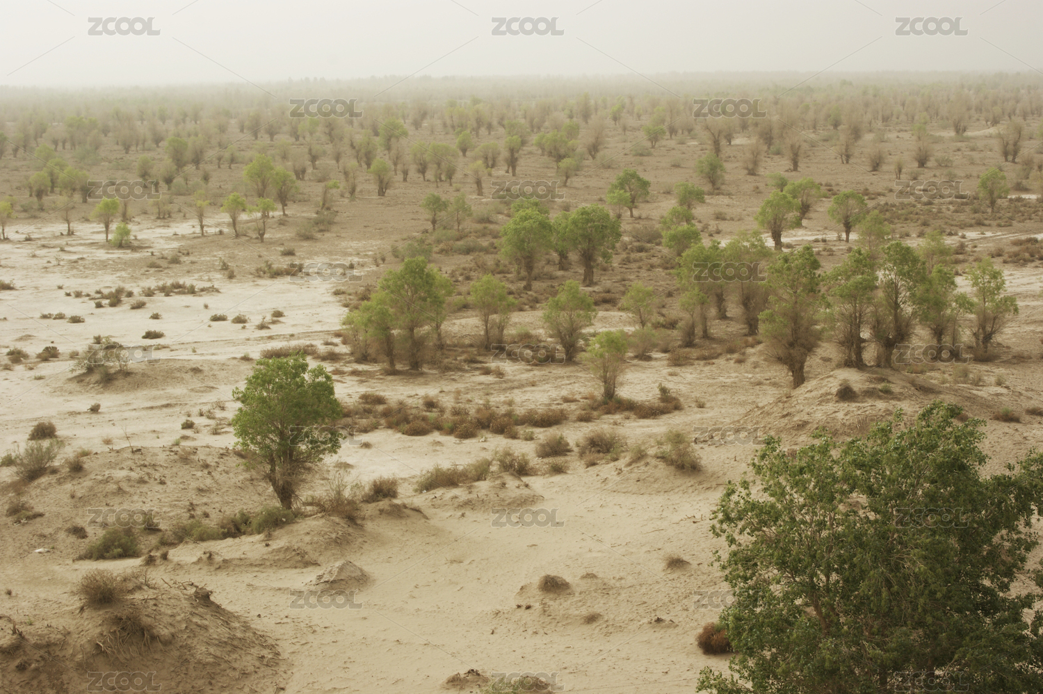 沙尘天气,在塔克拉玛干沙漠外围的胡杨林