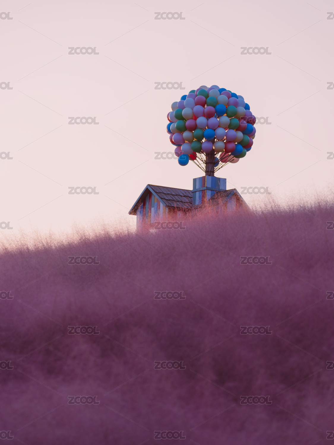 蘑菇屋房子梦幻想象场景童话故事3D插画