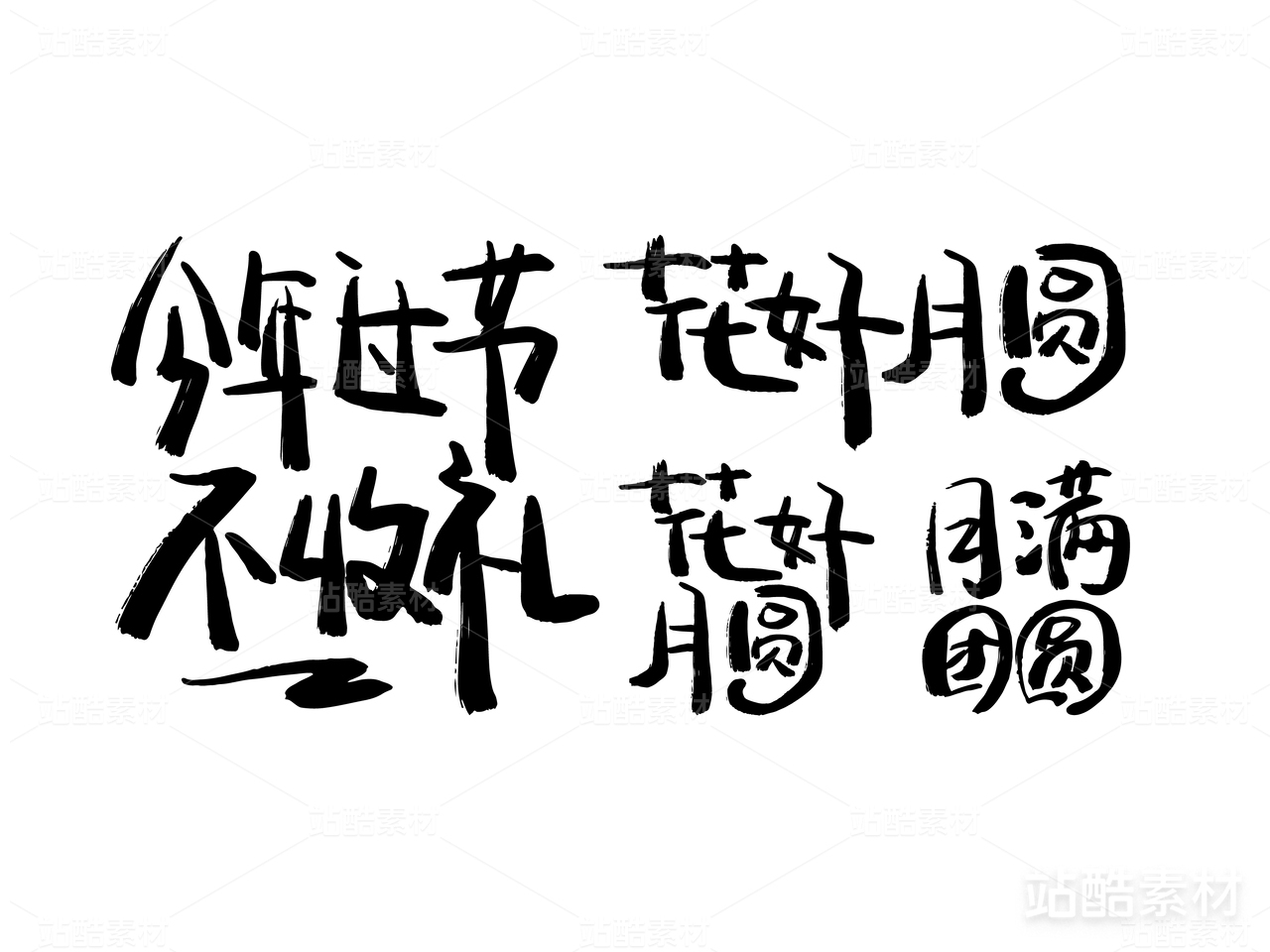 花好月圆中秋手写汉字书法艺术字体海报包装
