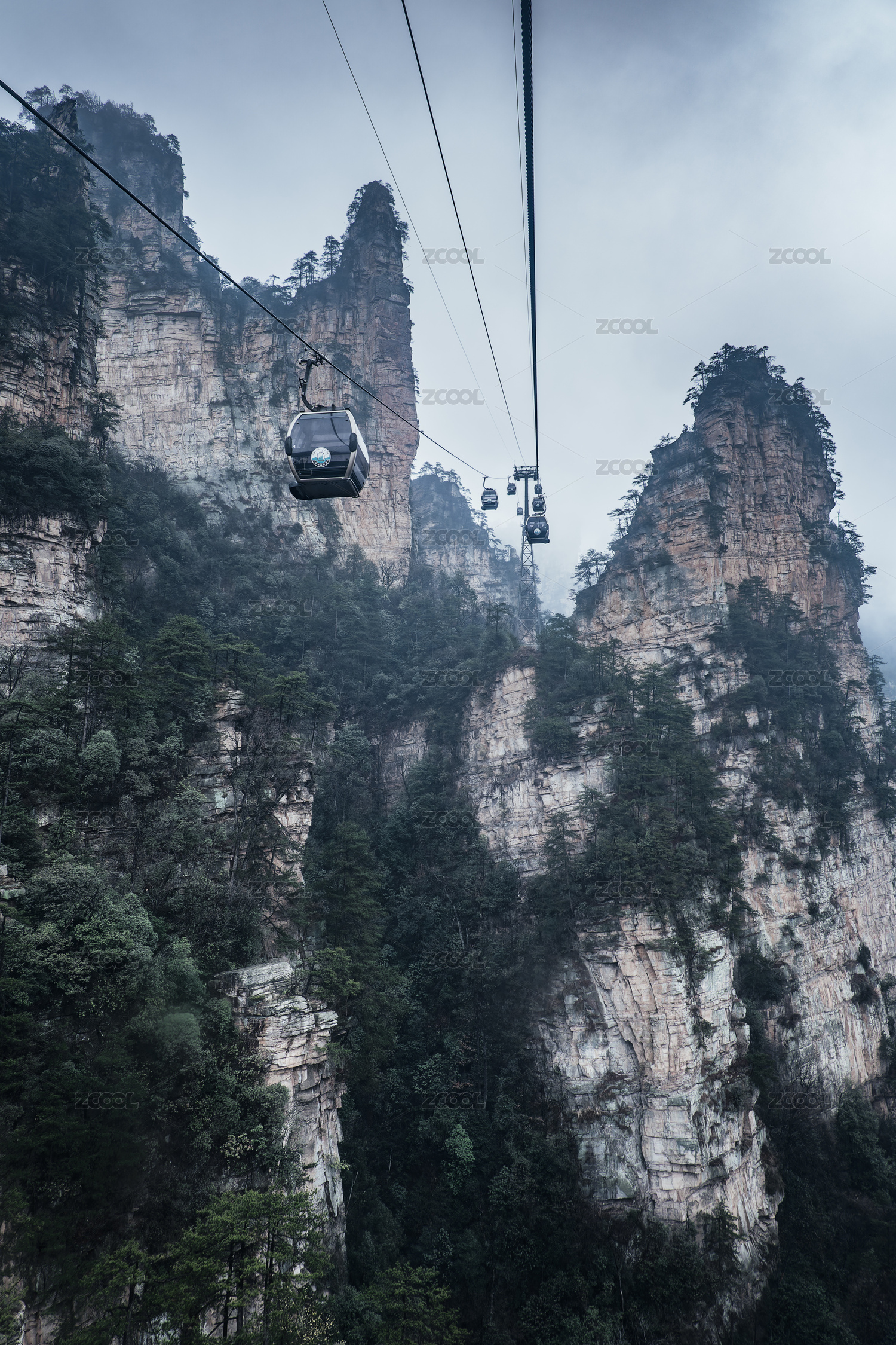 湖南张家界武陵源石英砂岩峰林索道自然风光