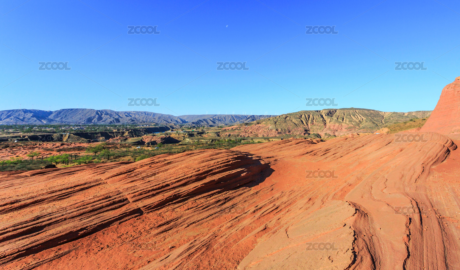 中国新疆维吾尔自治区吐鲁番市火焰山景区——炎热的红色砂岩地貌