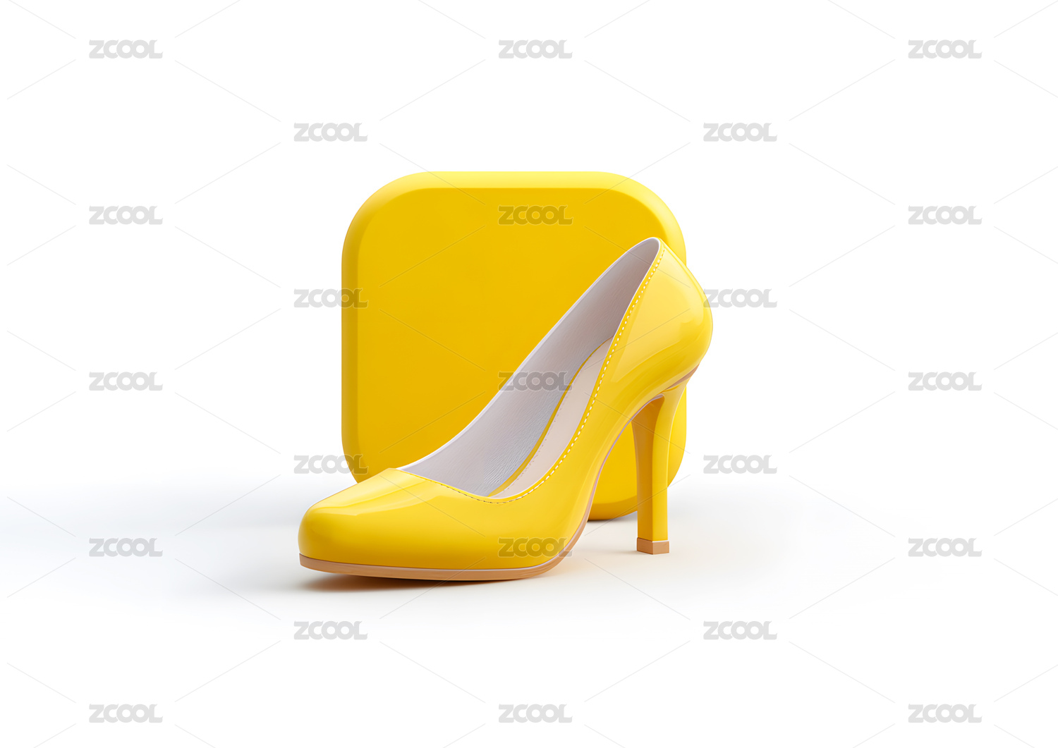 高跟鞋在黄色标签上