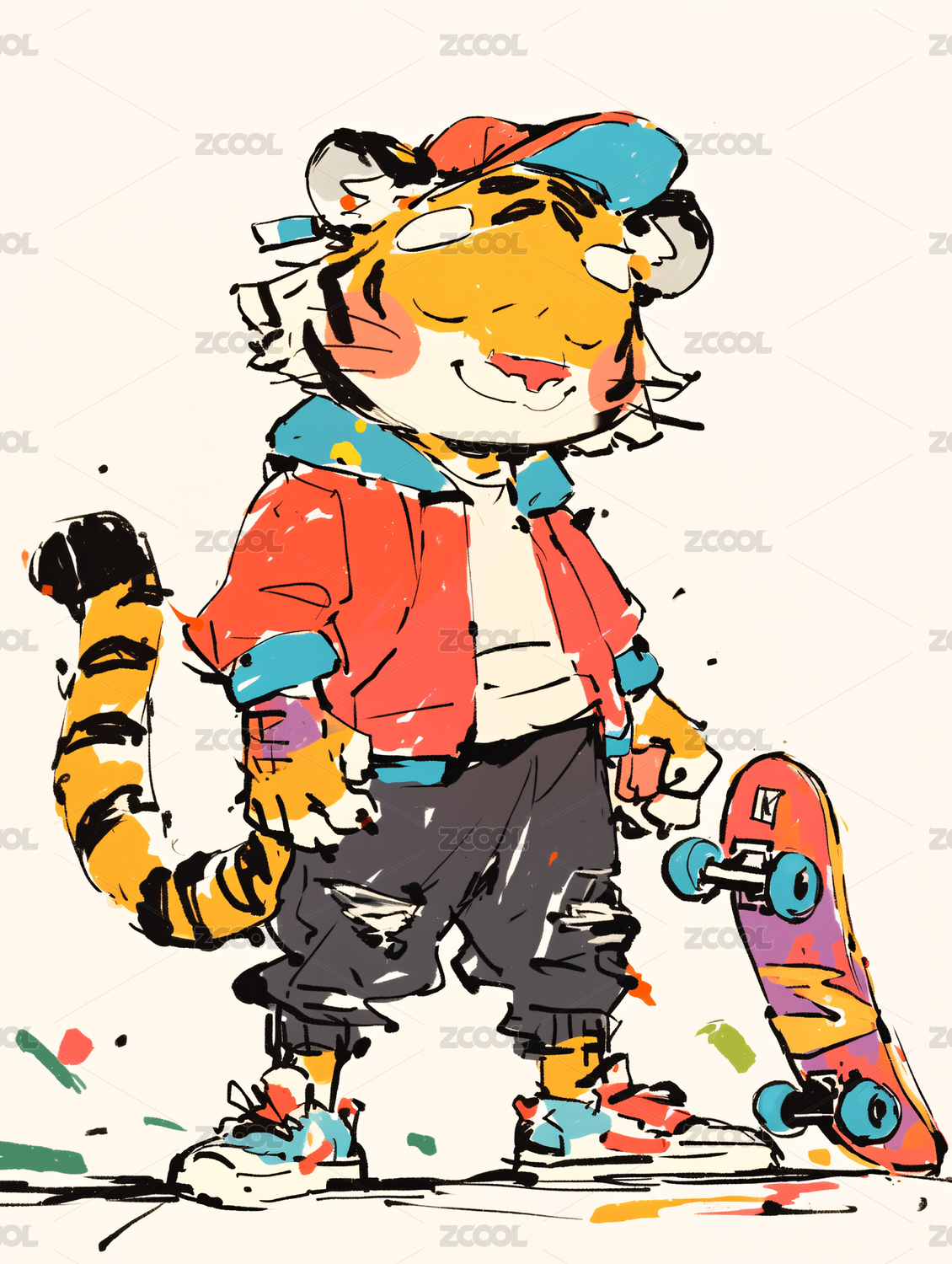 踩在滑板上的老虎