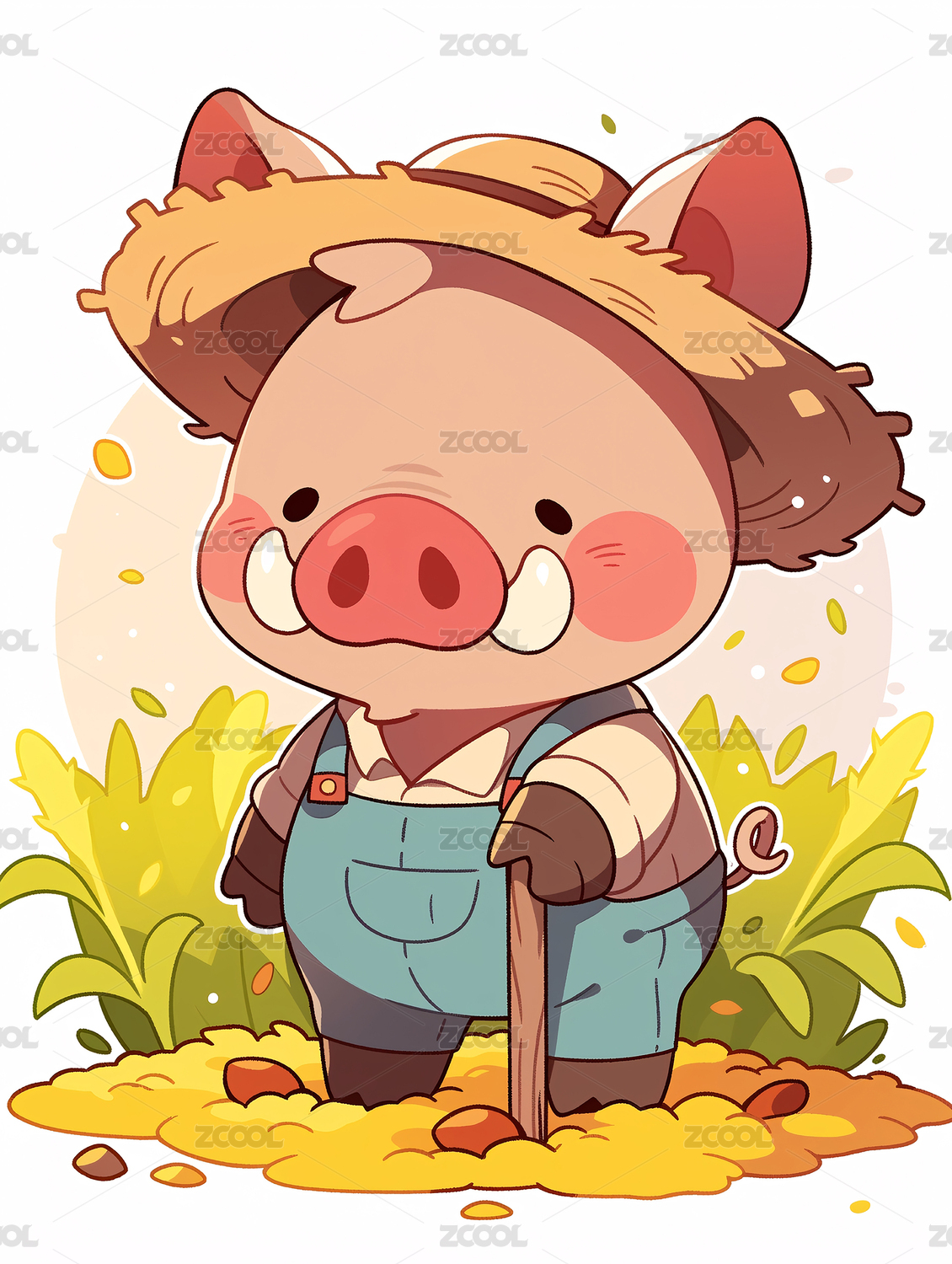 野猪戴着草帽