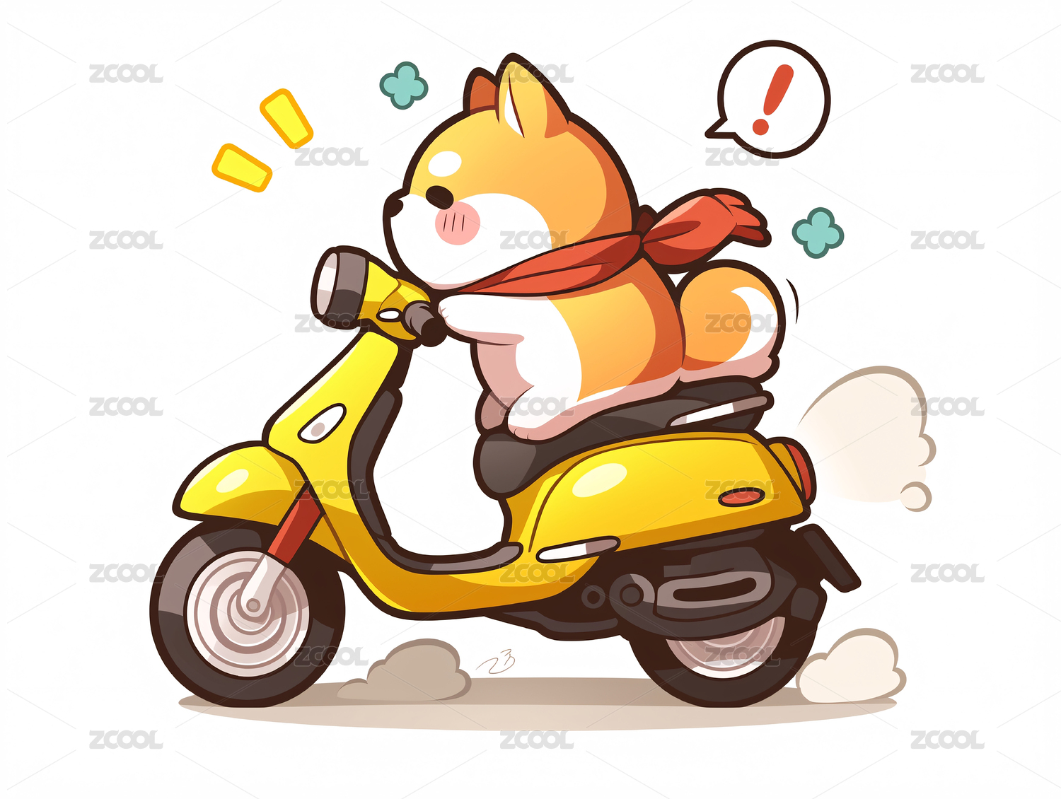 小狗骑着儿童滑板车