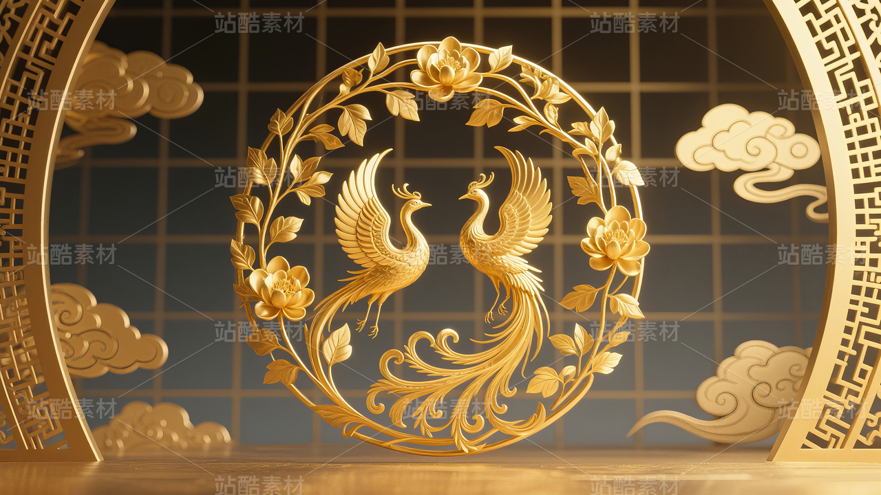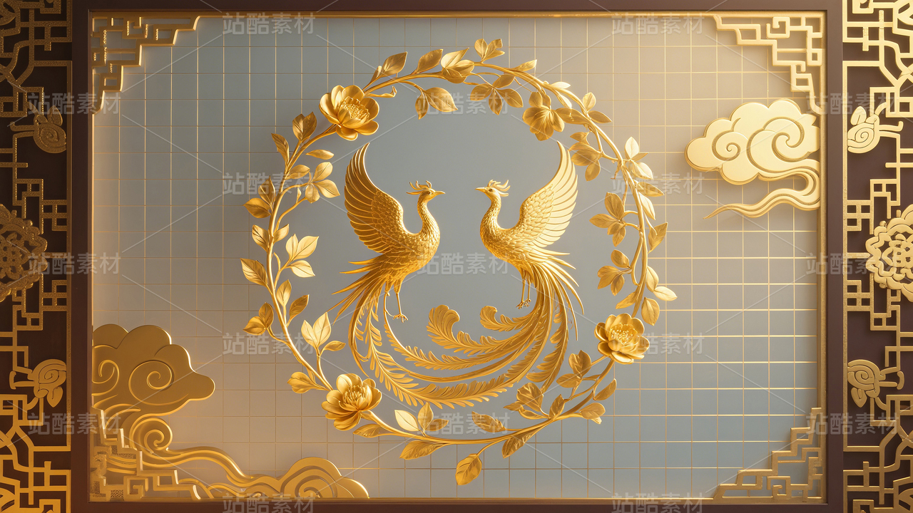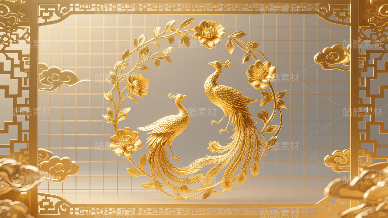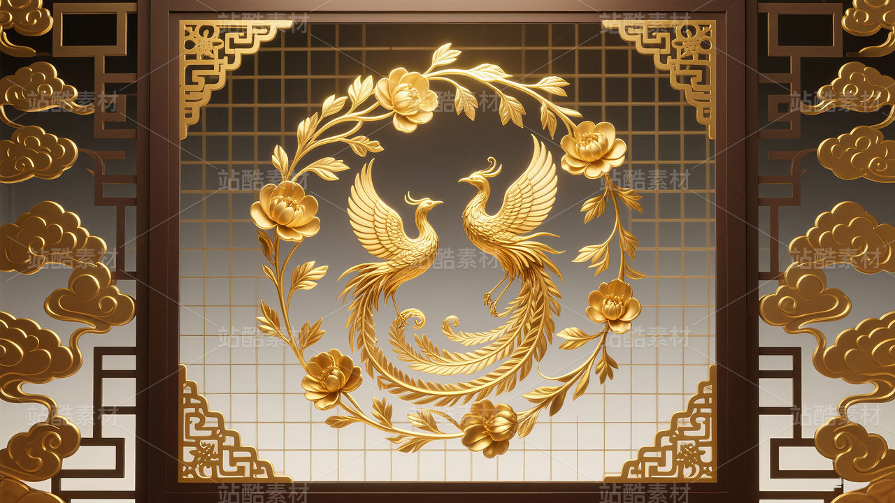 凤凰枫叶花开富贵牡丹孔雀中式国画装饰素材客厅壁画