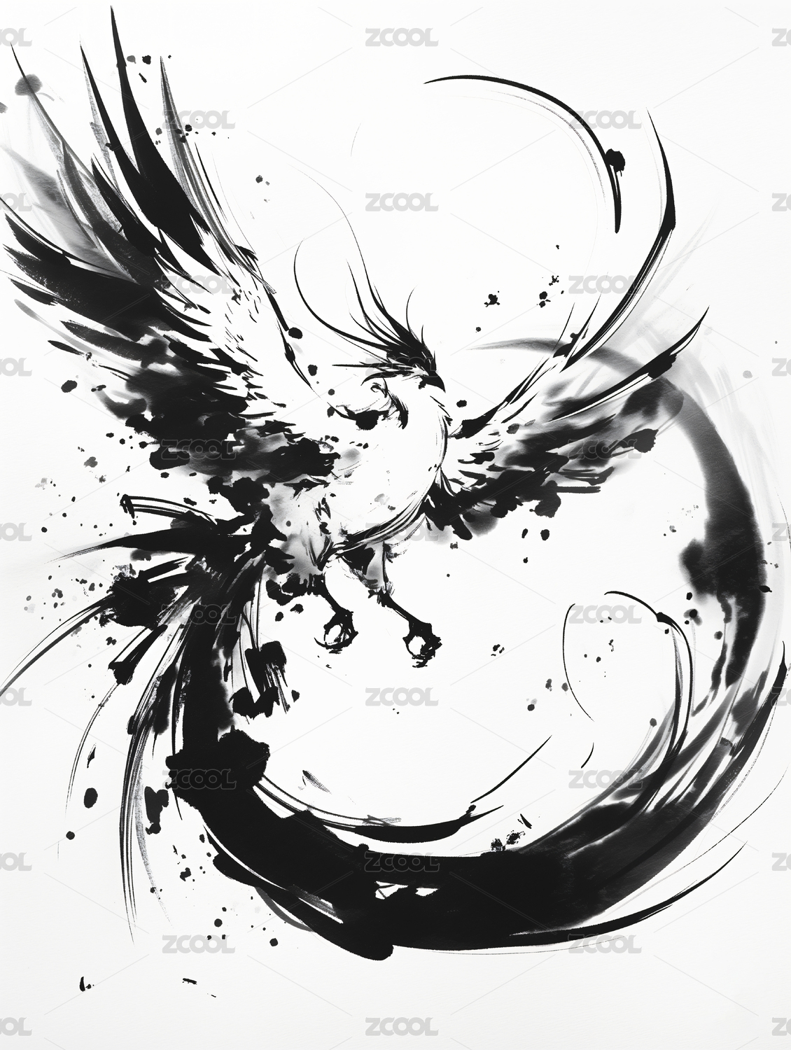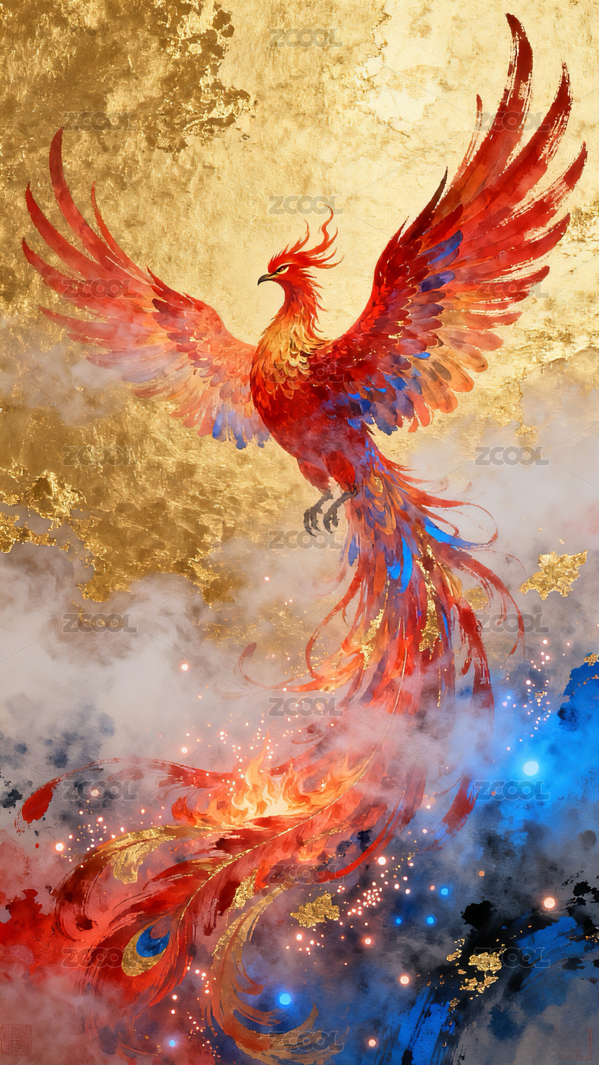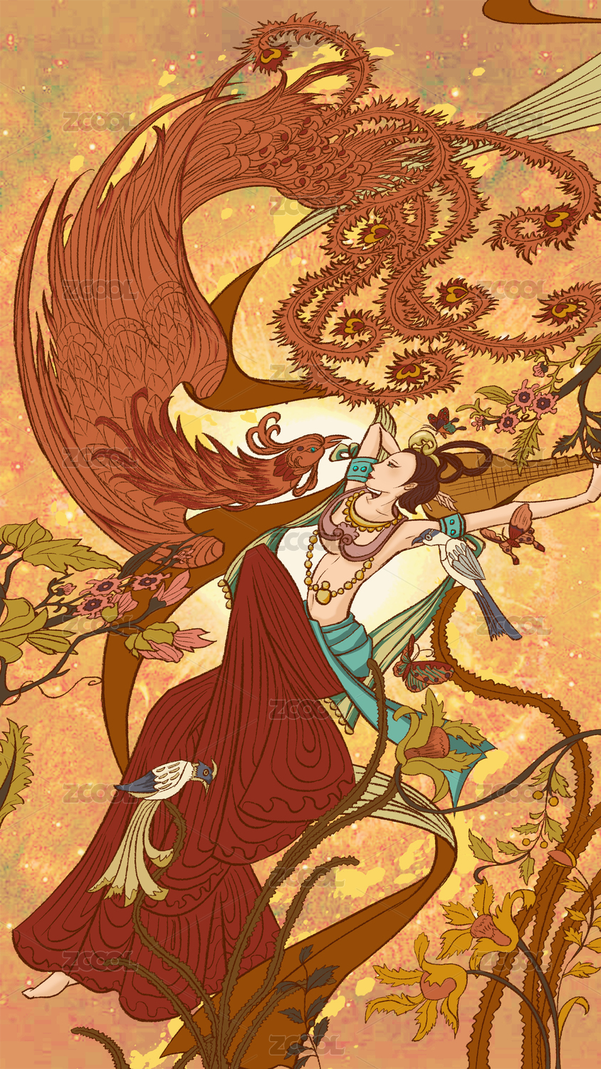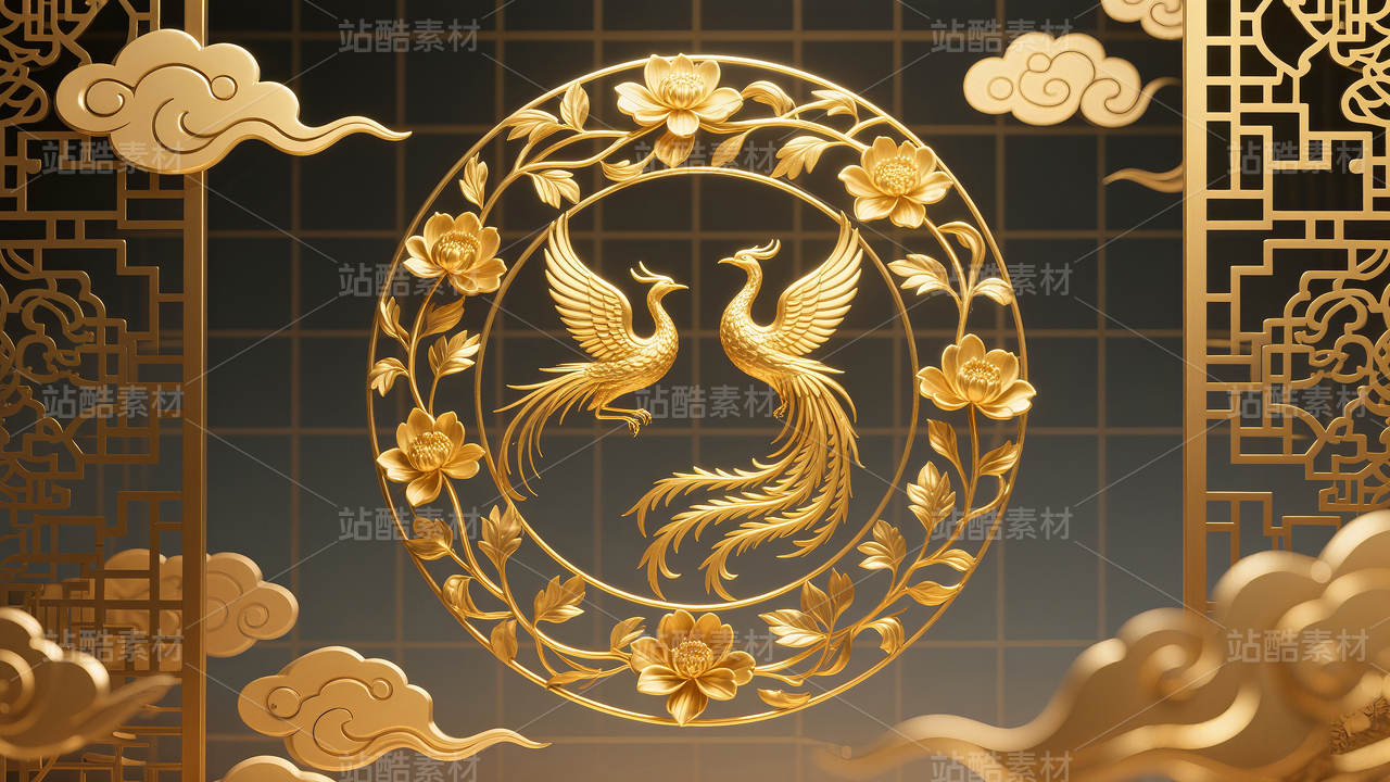 凤凰枫叶花开富贵牡丹孔雀中式国画装饰素材客厅壁画