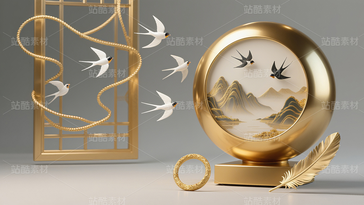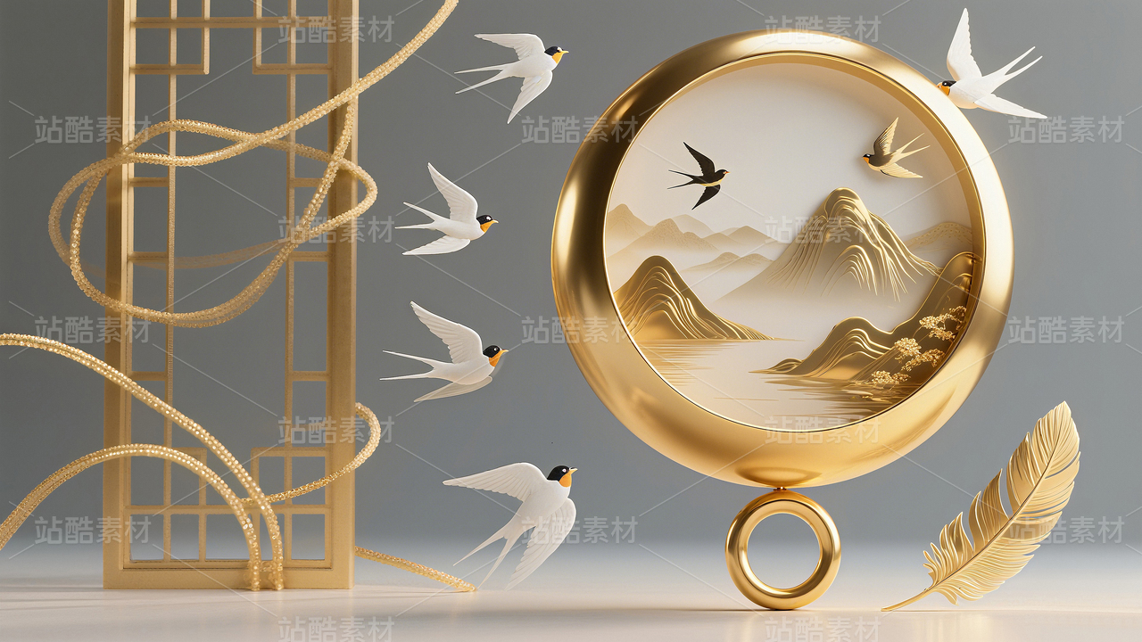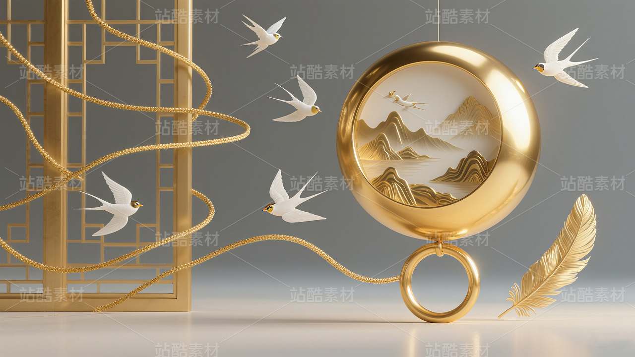 金蝉金砖壁画豪华家装金店装饰画金首饰店铺海报