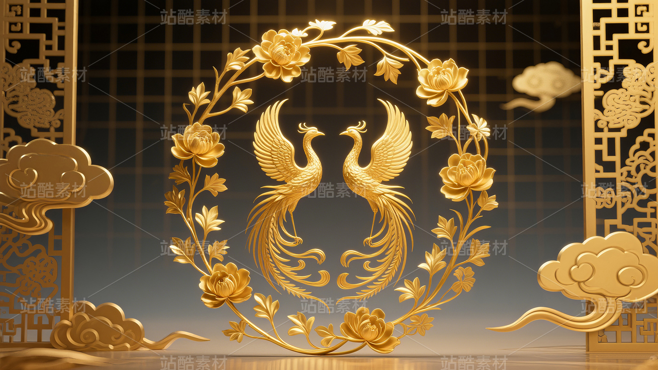 金凤凰豪华家装金店装饰画金首饰店铺海报花开富贵壁画