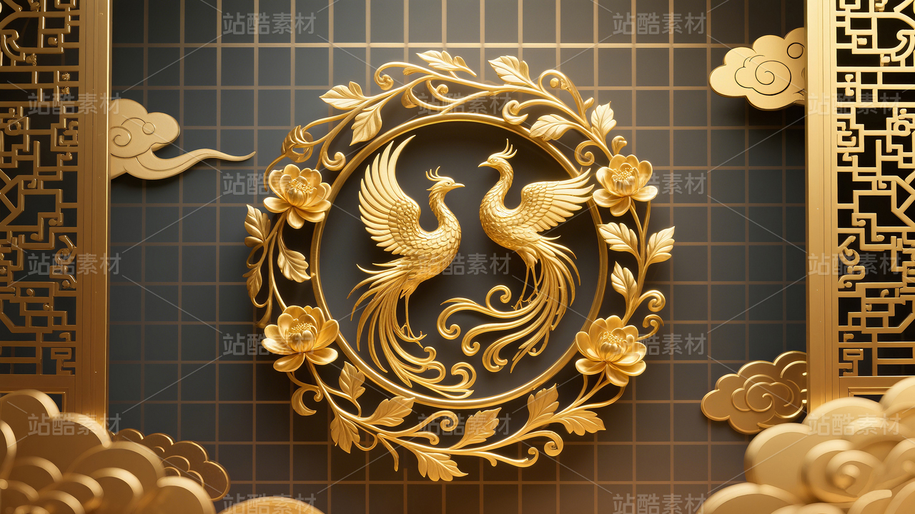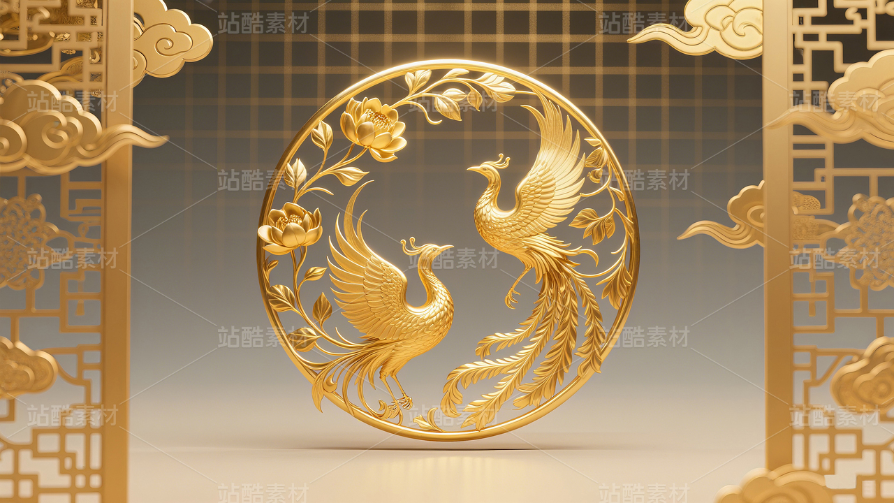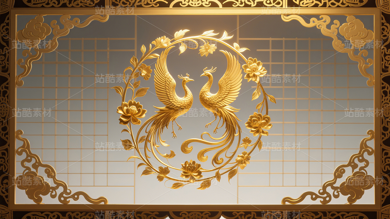 豪华家装金店装饰画金首饰店铺海报金色凤凰壁画