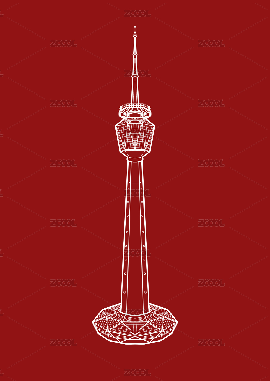陕西西安鼓楼地标建筑国潮中国风插画素材