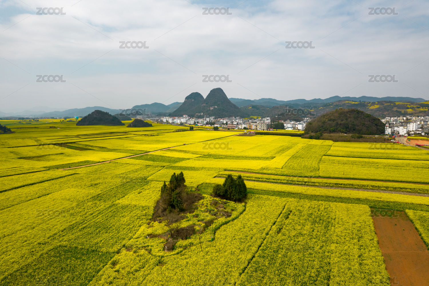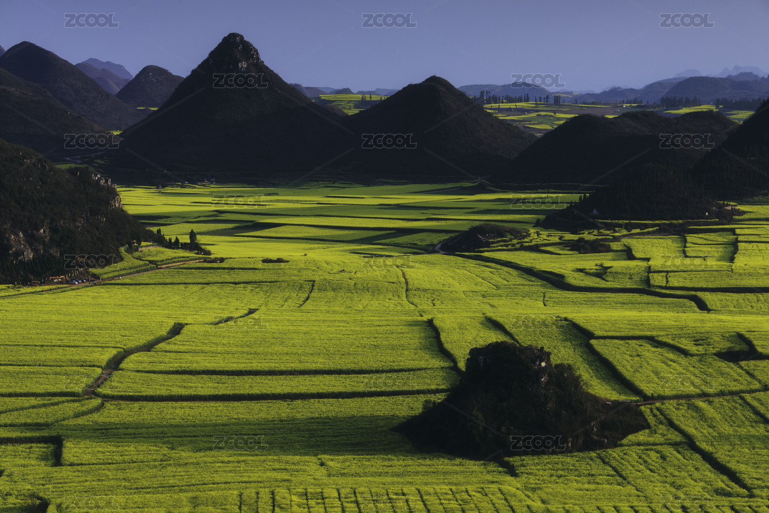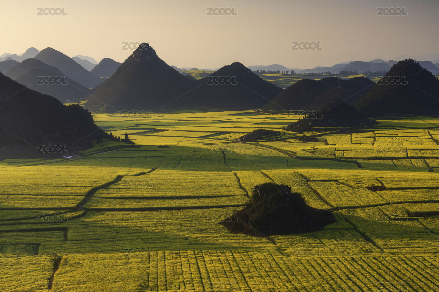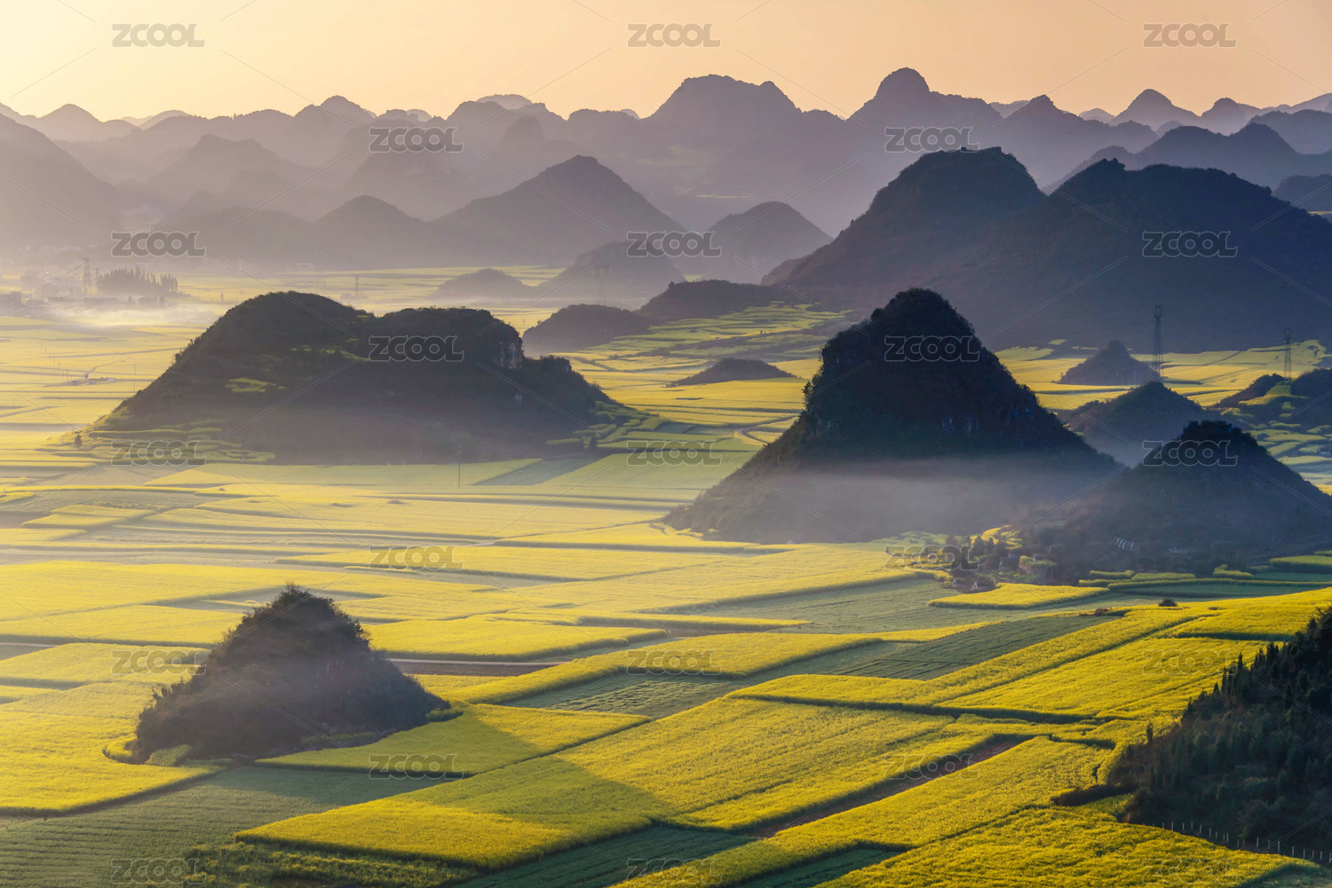 中国云南曲靖罗平金鸡峰丛油菜花田风光