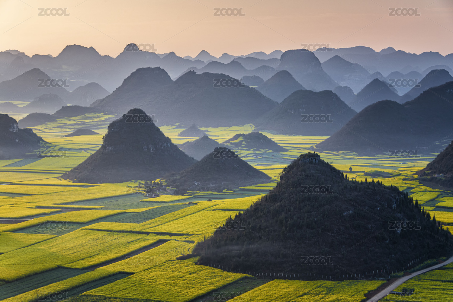 云南曲靖罗平金鸡岭油菜花日出朝霞
