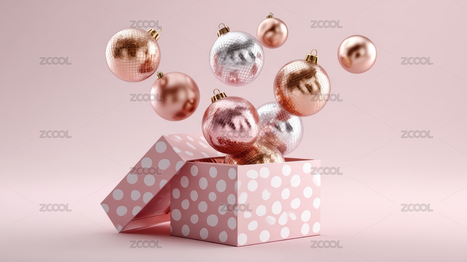 粉色礼盒中的节日装饰球