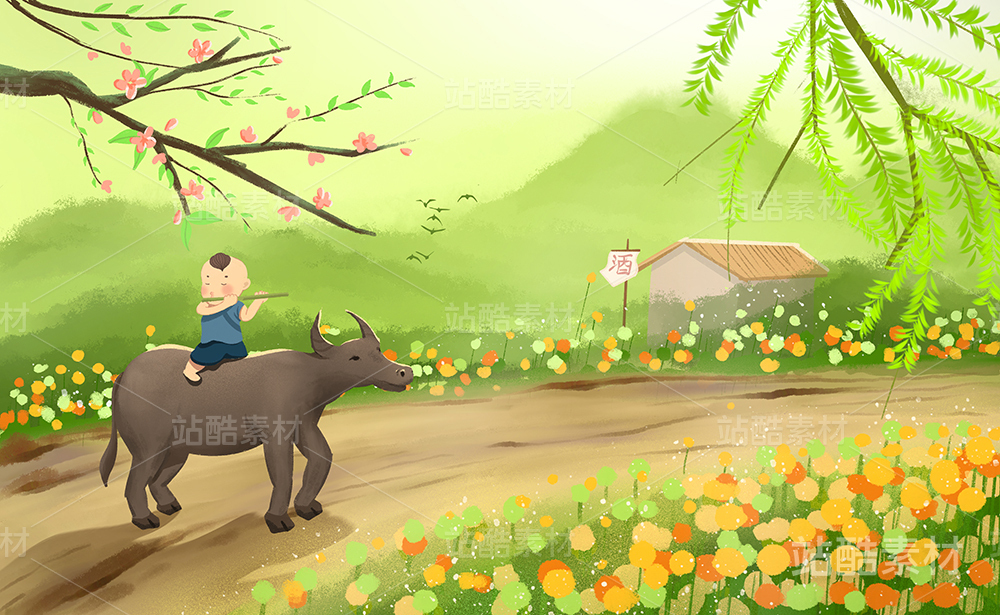 春天牧童清明插画