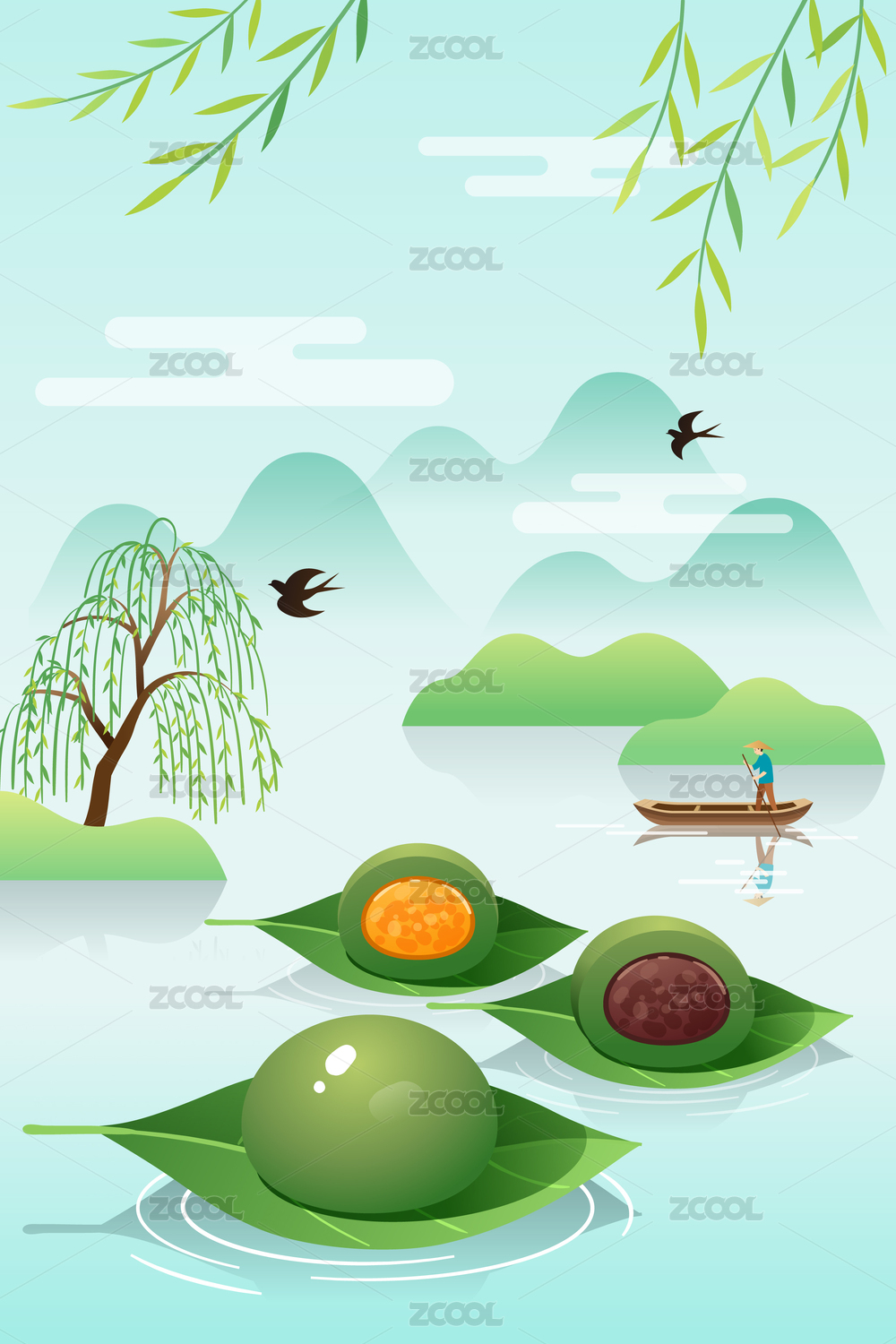 清明节青团插画竖版手机海报模板